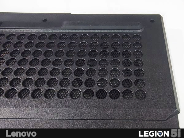 ▲ 廣布的散熱孔提供身為電競機型的Lenovo LEGION 5i仍有良好低熱體質,這些開孔同時也是揚聲器的出聲位置。為擁有完美的遊戲與音樂聆聽體驗,更配置 Legion 5i 2W Harman® 喇叭,渾厚深沉的低音讓玩家深深嚮往不已。