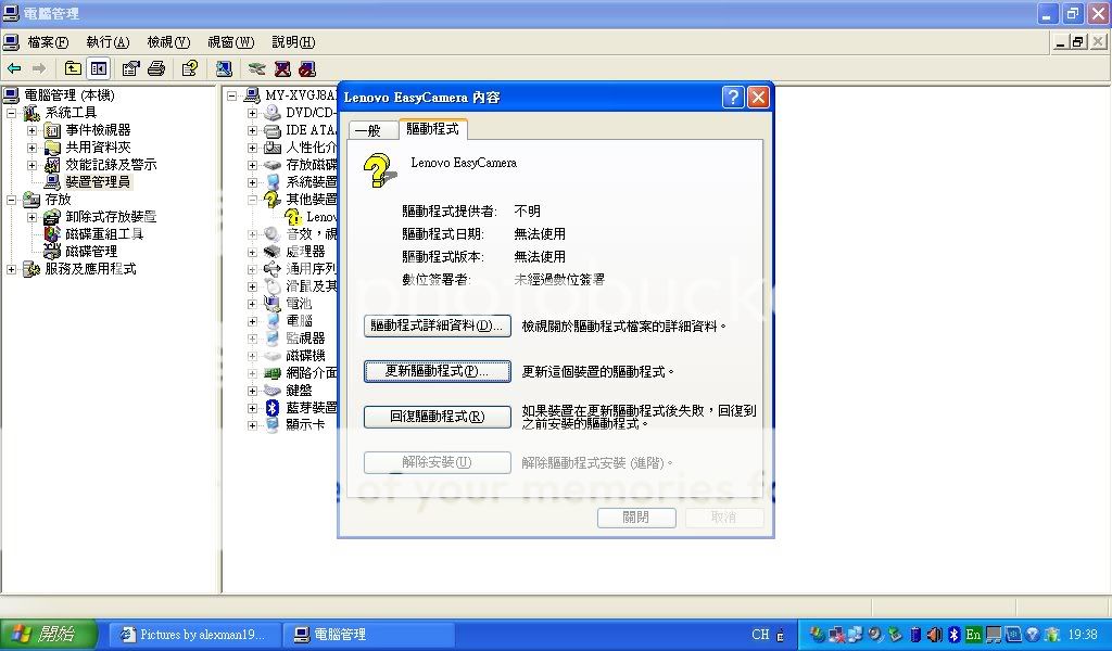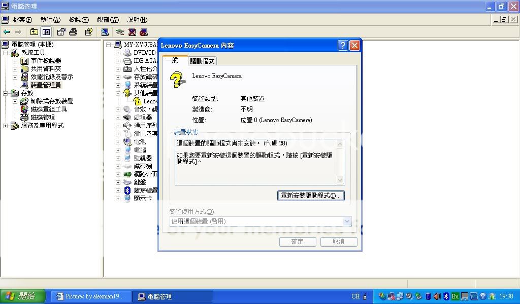 我太衝動了 ... &^$%#$*剛收到寄來的S10之後(10月幾日吧)開機後發現硬碟分割方式不合我意,想說就把硬碟分割全刪再重灌(包含隱藏的)重灌後才發現聯想附的driver cd 不含 webcam driver官網也沒,去聯想維修站竟也說沒有driver 只套用微軟的版本是2001年7月1日的而且品質超爛找了很久都找不著哪位可以提供連結呢?謝謝啦...