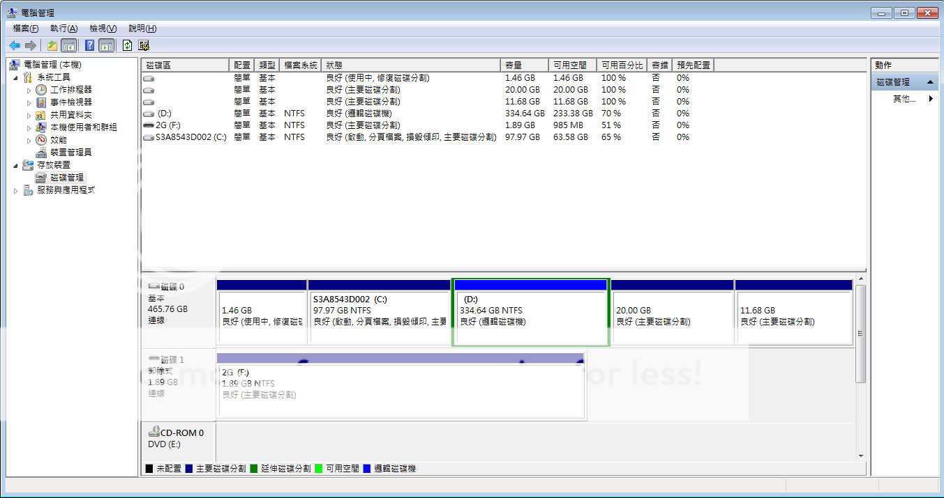 加上WIN7還原用的一個主要分割區(不確定)和作業系統用的主要分割區(就是C槽)