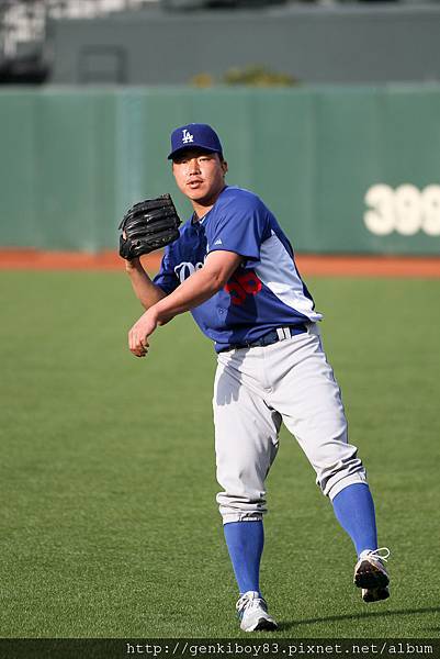 不同鏡頭之間的色調差異或許可以透過後製來達到類似的色調,但是畫質的銳利度跟大光圈所產生的散景就沒辦法達成了!最後,就來看看這支拍出來的效果吧!這是在2011年四月的時候大聯盟道奇對巨人賽前所拍的,當時鏡頭還是用借的