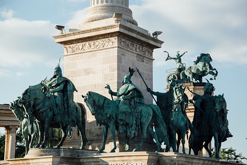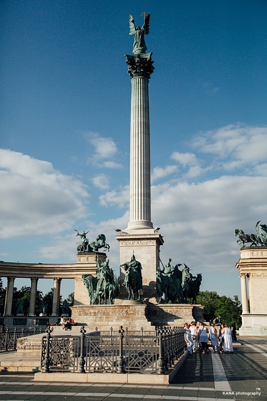 英雄廣場的中心,是該市的地標—千年紀念碑,刻有在9世紀創建匈牙利的7個部落領袖,以及匈牙利其他歷史名人的雕像。