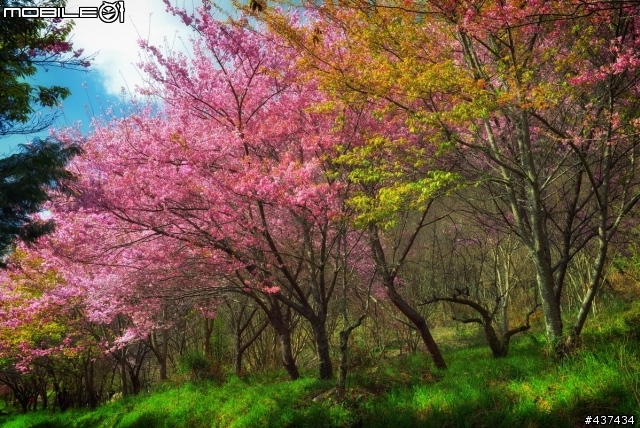 今天趁天氣好上陽明山拍的 菁山山莊附近某戶人家門口的兩棵櫻花樹