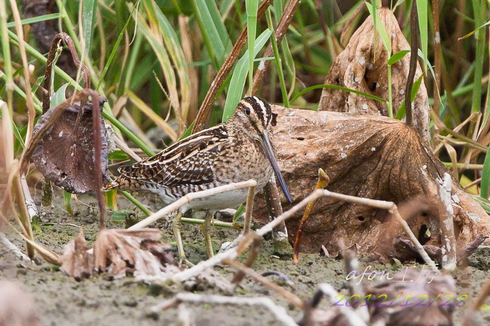 個小水窪,旁邊就是人高的蘆葦。藍胸大部分時間都藏身蘆葦內,只有覓食時才