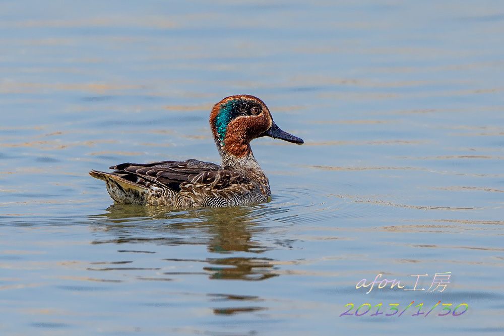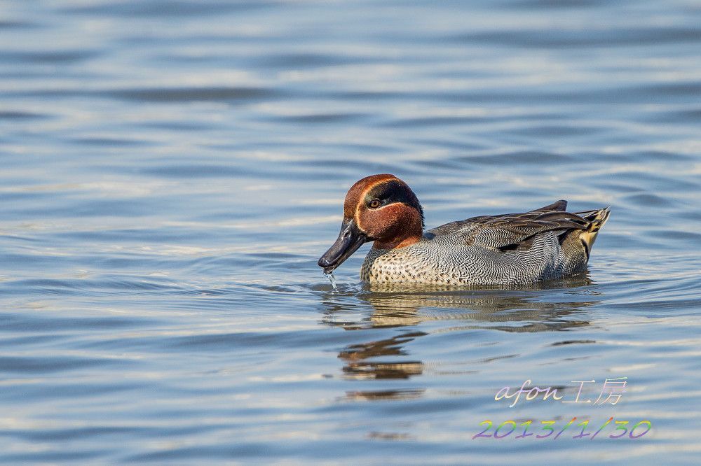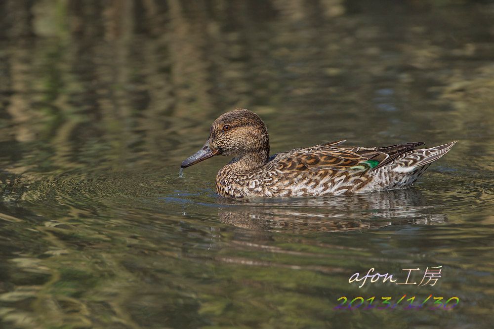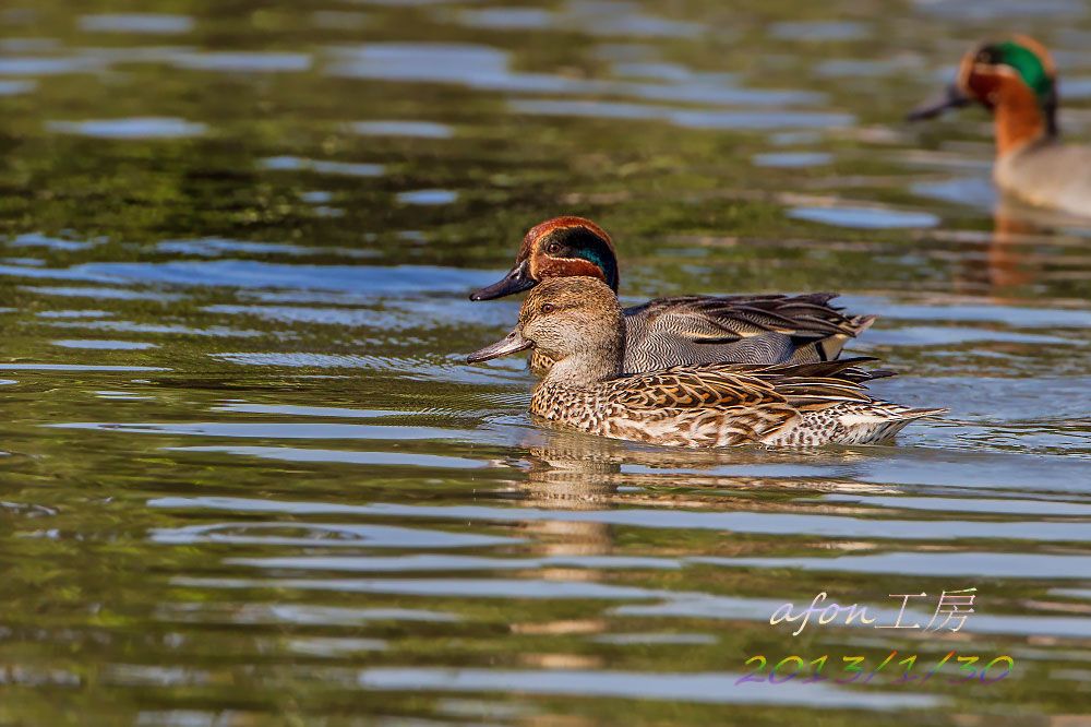 有趣的鴨子不止一次在貼文中說過鴨子是我最喜愛的鳥種之一,看到牠們以蹣跚的腳步拖著胖嘟嘟的身體,笑容就由心浮現到臉上。一直以來,澳門鳥季都鮮少見到鴨子。今年鳥況大旺,但渠口所見的就只有一種。01.由於忘於拍攝林鳥,很久沒有探訪渠口了。上月底趁著陽光普照跑了一趟,當時約有20隻在覓食,而且相當接近,我說的是綠翅鴨。綠翅是雌雄異色的,較遠的是雄鴨,而羽色較樸素的是雌鴨。02.現場的綠翅是雄性多於雌性,一隻雄鴨遊近偽裝棚。這隻頭部羽毛有點襤褸,估計仍是未成鳥吧。03.接著,一隻雄成鳥遊過來。除了羽毛豐滿之外,好像有點差異。04.當牠轉身時,注意到牠的屁屁羽色是兩塊黃色夾著一塊黑色的,而那隻未成鳥就沒有這麼明顯。05.當然,那個差異並無任何學理根據,純粹是推測而已。然而,對雌鴨就更無比較基礎。唯一不同之處是,部分雌鴨羽色較淺,而且從外觀上是無法看到其綠色的翼鏡的。06.這隻羽色較深,綠色的翼鏡也非常明顯。07.之前已貼過綠翅雌鴨左右翼鏡是不同顏色(邊藍邊綠)的,其實是因光線角度不同所致。正如這隻雌鴨,牠右翅膀剛好處於陽光不是直接照射處,這就呈現藍色。綠翅鴨Eurasian Teal,學名Anas crecca,分類為:雁形目>鴨科>鴨屬要增加鳥攝興趣,最佳方法是在拍完照片後,識別所拍得的雀鳥。那麼下次外拍時,就再不會與鳥友說:〝昨天拍得一隻黑色的鳥〞了。afon