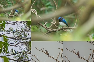 一切是緣份在自我宣傳中,澳門是個國際城市,是個國際旅遊休閒中心,是個法治之區。剛收到鳥友的訊息,說有人在離島生態保護區非法釣魚,更離譜的是因潮退,釣魚者還跨過泥灘,走到離岸邊約百米外的堰上垂釣。鳥友好言相勸,對方不領情外,還惡言大罵。眾人只好報警求助,那知差人到場,釣魚者仍不服警令留在堰上。最後警方增援到場,釣魚者才肯上岸。然而,整件事最令人不快的就是,警方竟然以這裡屬民政總署管轄範圍,他們無權開罰單為由,就讓鬧事者施施然離去。01.由於梅雨,已經多天困在家中。趁昨天上午天色較不陰暗,立即趕上廢墟山。當時已聚集多位鳥友,因為早前有發現幾種過境鳥的蹤影。稍有發現,各人就急忙快步搶佔最佳位置。鑑於器材沉重及深信〝要來的不會走掉〞,所以只選了一個較遠的空位。在大家運動完畢閒聊之際,忽見一隻羽色奪目的小傢伙飛進前面的矮樹叢內。稍為尋找,就在橫枝形成的框內發現了這隻藍白色的主角。02.拍了約10張後,眾人方如夢初醒,我也功成身退,讓出位置給鳥友。不過,就在鳥友為避開橫枝而忙於調整腳架之際,牠又飛走了。這隻是白腹藍鶲,而且是羽色較亮麗的雄鳥。03.上個鳥季一直與銅藍鶲無緣,見到的機會已少,更枉論拍照。今年年初,在拍栗背短腳鵯時,瞥見大老遠前的橫枝上有團藍色物體。04.拍下放大一看,原來正是銅藍,而且是眼先黑色的雄鳥。一直都保留著這兩張,原因是心裡仍幻想著遲些或許有再會的可能。隨著鳥季結束,估計這已是今季唯一的機會了。05.昨天另一個目標是八聲杜鵑,雖然拍得不好,但又是僅有的機會。06.這隻又是雄鳥。由於效果強差人意,在後製上更不敢銳化,只作背景處理而已。雖然拍攝時的iso不太高,以銅藍為例,感光度只為iso-100,但因是大逆光,而且要裁切很大。從這兩張就可看到甚麼是雜色。白腹藍鶲Blue-and-white Flycatcher,學名Cyanoptila cyanomelana,屬香港稀少春季過境鳥;銅藍鶲Verditer Flycatcher,學名Eumyias thalassinus,屬澳門冬候鳥。兩鳥的分類為:雀形目>鶲科>鶲屬八聲杜鵑Plaintive Cuckoo,學名Cacomantis merulinus,屬澳門夏候鳥(?)要增加鳥攝興趣,最佳方法是在拍完照片後,識別所拍得的雀鳥。那麼下次外拍時,就再不會與鳥友說:〝昨天拍得一隻黑色的鳥〞了。afon