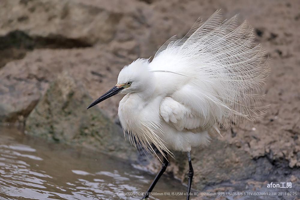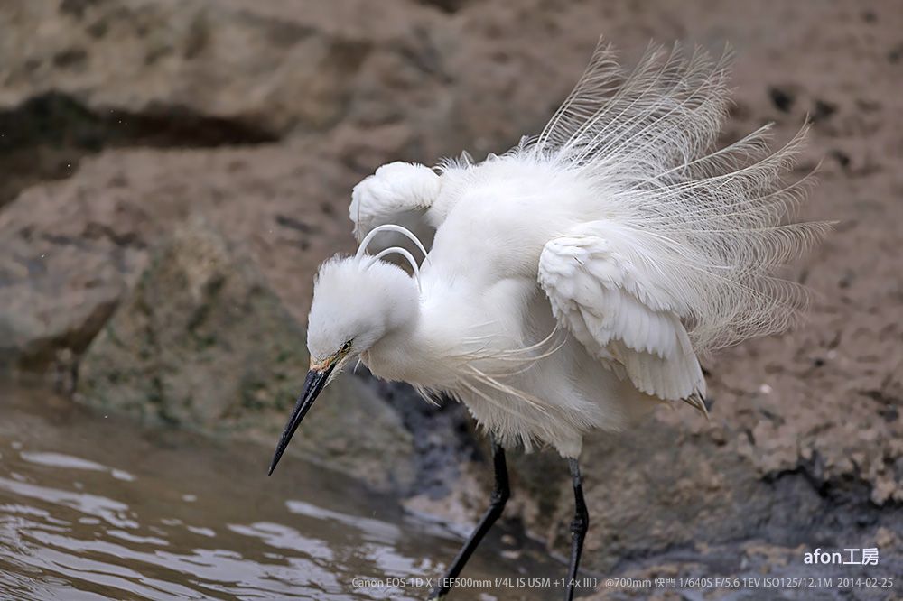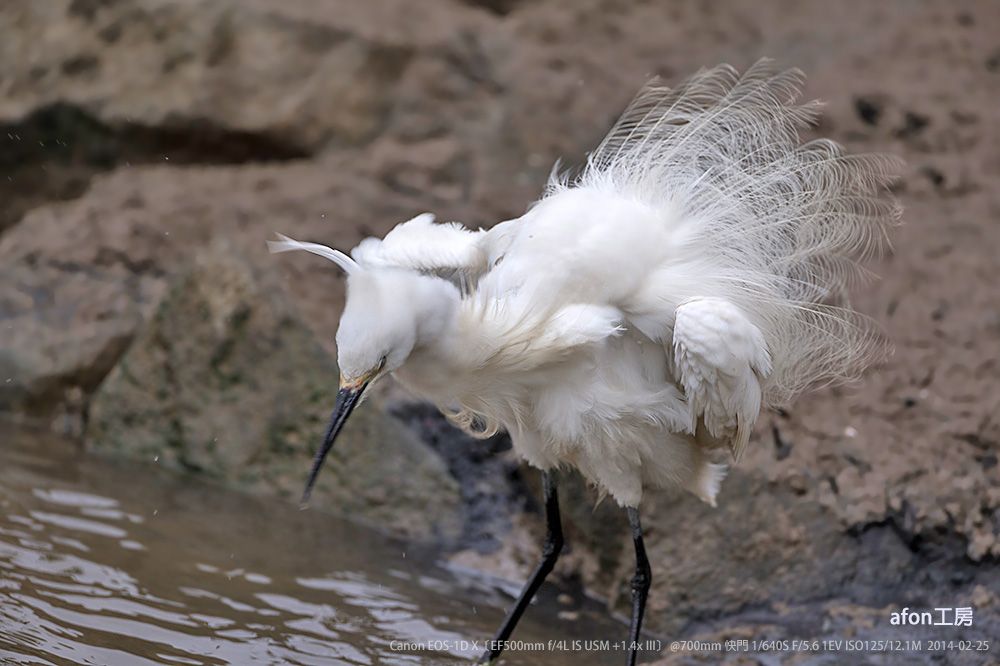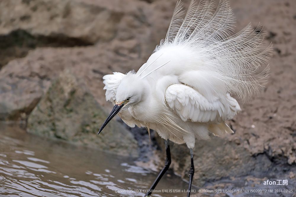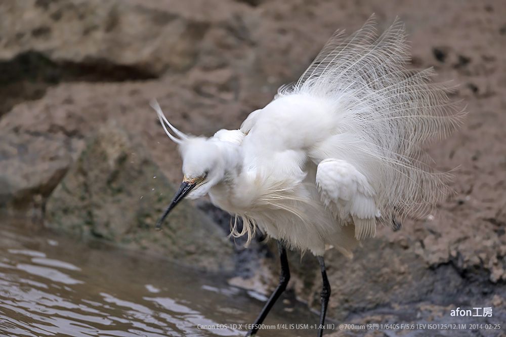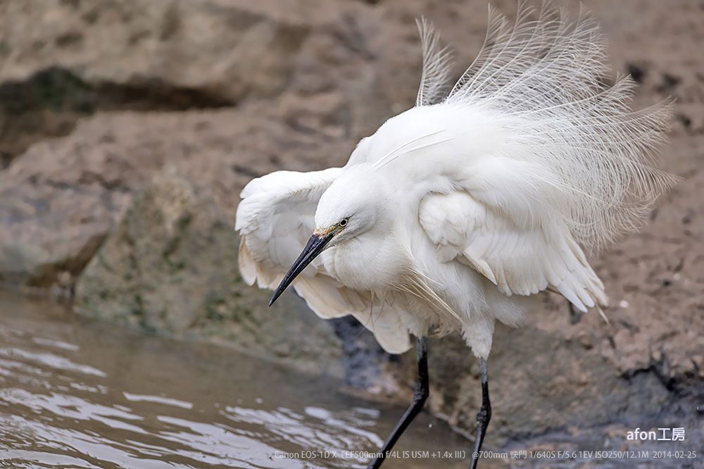 白鷺開屏雄性孔雀為吸引雌鳥,在繁殖季節都會將長長的尾羽開成一個接近圓形的漂亮圖形。某天在渠口等候時,剛好有隻有繁殖羽的小白鷺在豎起全身羽毛,雖然純白的羽毛就不及孔雀的漂亮,但也頗有看頭。小白鷺Little Egret,學名Egretta garzetta,在澳門屬留鳥,分類為:鵜形目>鷺科>鷺屬請各位鳥友拍完美照後,記得帶走一切廢物。afon