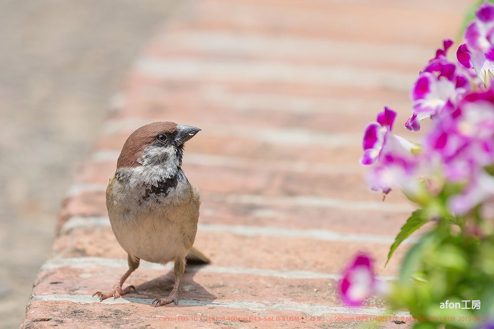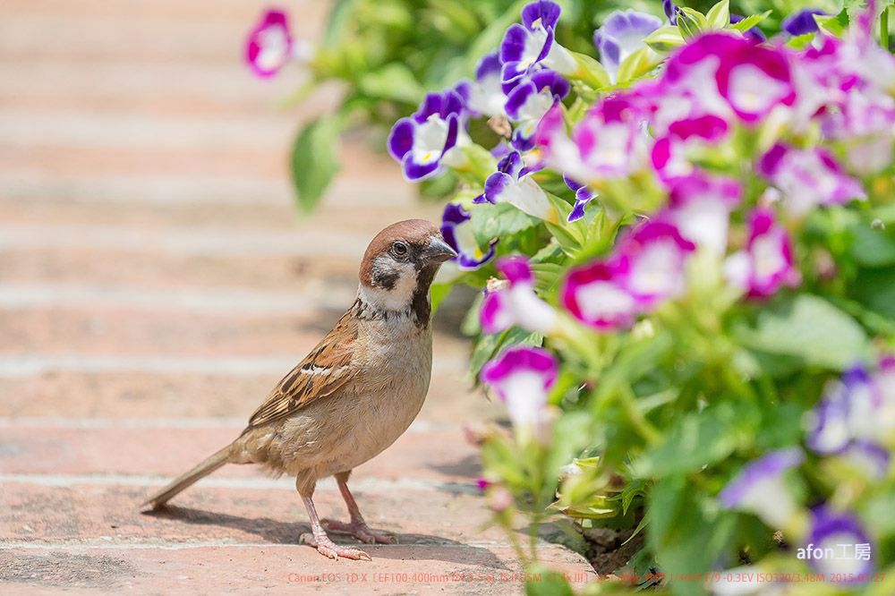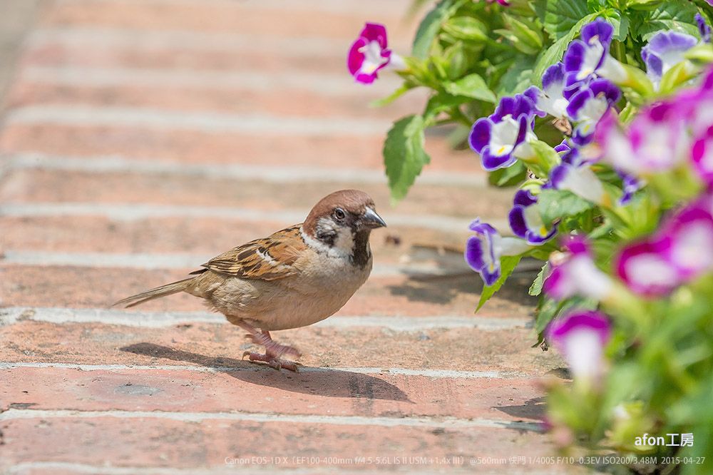採花小麻雀屈指一算,3月已到尾末,就連過境鳥也應返航。然而,也是時候重拾感覺,就當為下個鳥季提早作準備吧。01.這個時候還有甚麼好拍,老朋友吧。02.盧園花壇的小麻雀對著這叢艷麗的花兒在採頭採腦。03.神態相當專注。04.曾與鳥友說過,只要還有麻雀,就可繼續保持鳥攝器材。05.時至正午,就帶著愉快的心情回家吧。06.在炮台山見到這一幕,看來應該是海南藍仙鶲,想起半個月前在附近也拍過牠的同類。一隻為口忙碌,而這隻雖然不愁吃喝,但卻失去自由。最近看一電視節目,有段剛好拍到幾位在海邊拍水鳥的鳥友。主持人上前訪問,其中一位答說:「我不是在拍鳥,我只是在拍自由」。麻雀Eurasian Tree Sparrow,學名Passer montanus,澳門留鳥,分類為:雀形目>麻雀科>麻雀屬。海南藍仙鶲Hainan Blue Flycatcher,學名Cyornis hainanus,在澳屬過境遷徙鳥;分類為:雀形目>鶲科>仙鶲屬。請各位鳥友拍完美照後,記得帶走一切廢物。afon