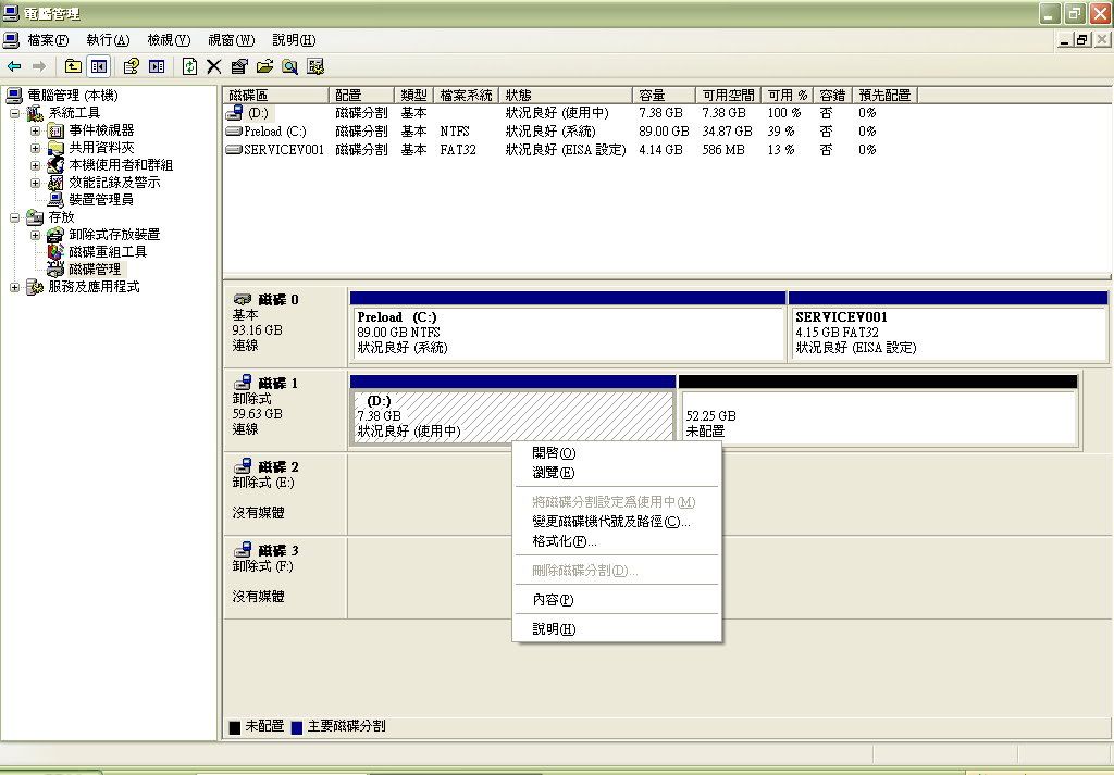 另外64GB只能格成NTFS or EXFAT(Vista、7有支援, XP需手動更新), FAT32是無法格式化的.