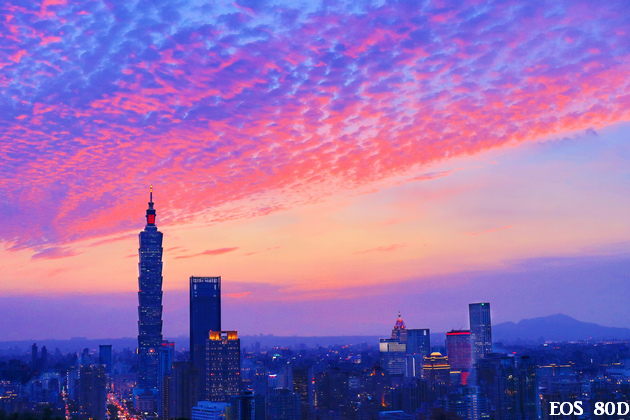 初次帶著Canon EOS 80D拍台北101夜景,竟讓我幸運見到出大景:火燒雲。