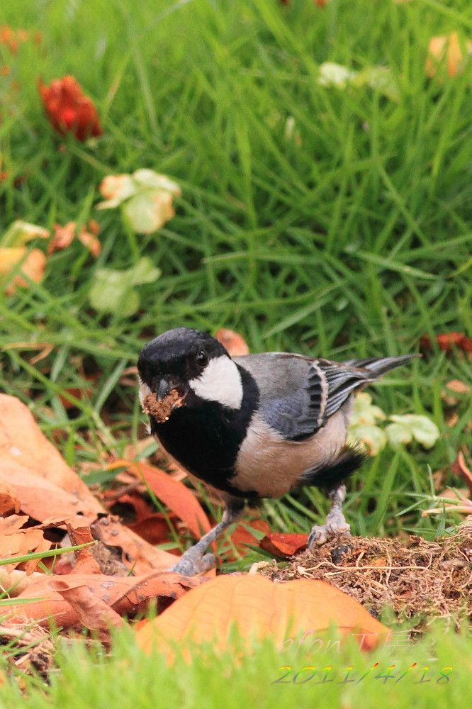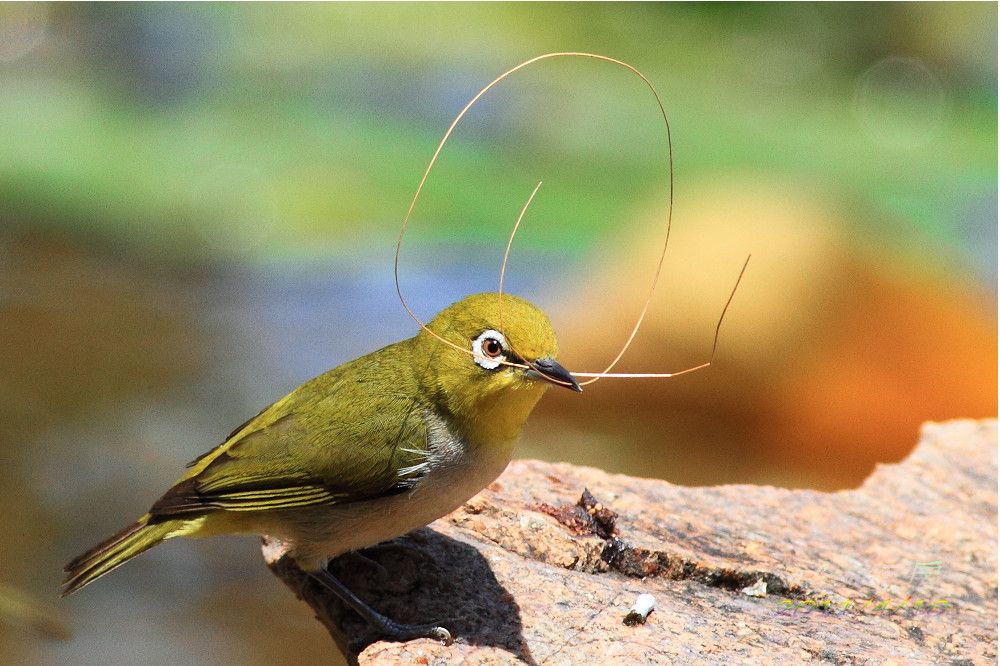 06.當才在白頭旁邊的是隻暗綠繡眼鳥Japanese White-eye,當時牠叼著根圓形的草,極像個玩