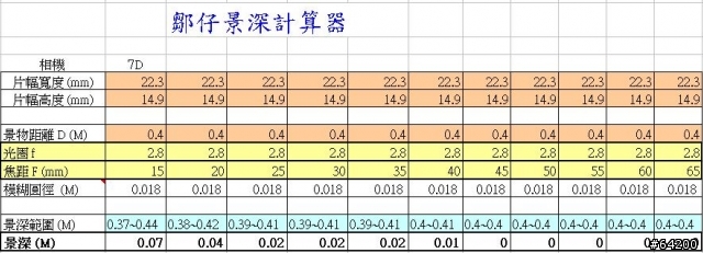 景深淺之方法 (反之亦反)1.大光圈(光圈值小)2.長鏡頭(望遠鏡頭)3.近距離距離40cm核計固定焦距(15mm廣角),逐漸縮小光圈之景深狀況. (光圈↓ 景深↑ = 光圈↑ 景深↓ 同歸納之一)光圈固定(2.8),拉近鏡頭(廣角變望遠). (焦距↑ 景深↓ 同歸納之二)若1.不想開閃光影響食物色澤2.不想調ISO影響細致度3.不想帶LILI COCO的腳架/ 不想用4.懶得拿燈光補光最後就只能回到拍照最基本的控機技巧了...穩定度!樓主的照片...應該是有開閃光的...食物有個好處,他不會像海邊的海星一樣長腳跑走.