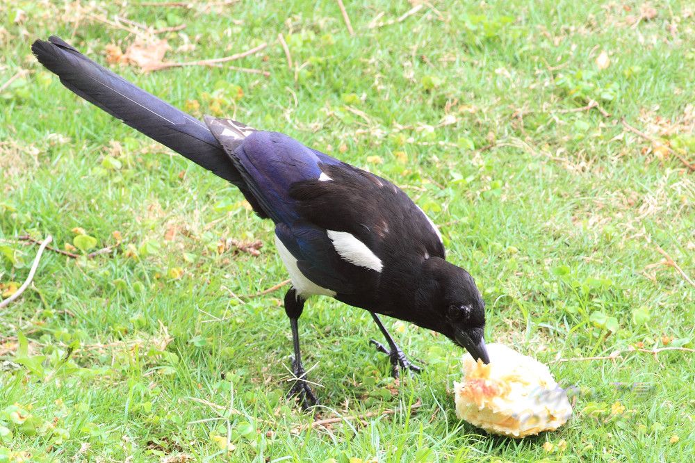 04.廢墟山食堂的食客中,以喜鵲Common Magpie最霸道,當牠走向食物時,其他