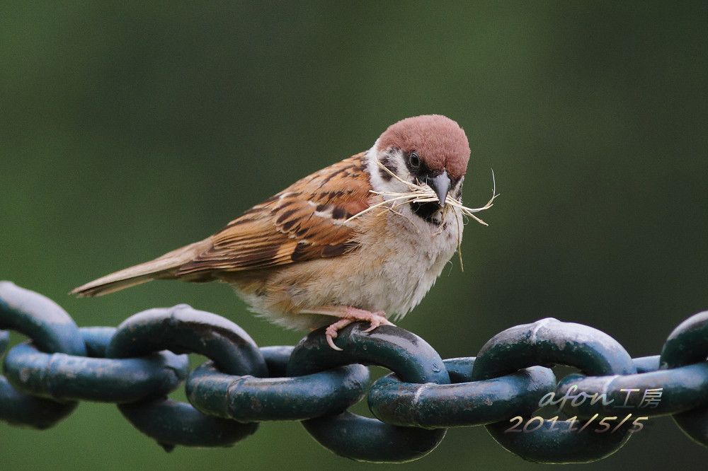 01.已是5月了,這隻麻雀Eurasian Tree Sparrow仍在忘於啣草,相信是要趕時間,搞生產。