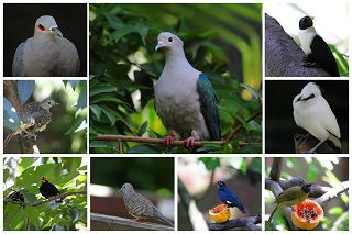 籠裡在鳥況已到所謂山窮水盡的狀況,最好不過是去公園拍公園鳥。鄰埠的公園內還設有超大型的鳥籠,遊人可置身其中,近距離地拍攝一些較罕見的雀鳥。01.火紅色的爪及虹膜的是裸眶皇鳩Pinon Imperial Pigeon。02.這隻體型雄偉的是綠皇鳩Green Imperial Pigeon,估計比普通鴿子大了三分一。03.也有身裁較為嬌小的斑姬地鳩Zebra Dove。04.看起來很像黑卷尾且同是鴉科的叫盤尾樹鵲Racket-tailed Treepie。05.接著的是椋鳥科的,頭部羽毛看來像人類皺紋的是鵲椋White-necked Myna。06.這隻不是鷯哥,而是黃臉樹八哥Yellow-faced Mynah。07.這隻是金冠樹八哥Golden-crested Myna,按資料顯示雌鳥的黃色部分較小,所以估計這隻應是雌鳥。08.滿場飛舞的是長冠八哥Bali Mynah。09.搜尋資料時,始知這鳥是屬於一個有奇怪名稱的科〝園丁鳥科〞,牠就是淺黃胸大亭鳥Fawn-breasted Bowerbird。自開始鳥攝後,愈覺得雀鳥是不應當寵物而被關在籠內的。然而,這公園的鳥龍佔地3000平方米,最高點達30米,相信在此的鳥兒或許也不覺是被關在籠內吧。想遠一點,人又何妨不是〝籠中鳥〞!這些〝籠〞可能不只一個,而是一層一層的。環保鳥攝,您我做起。afon