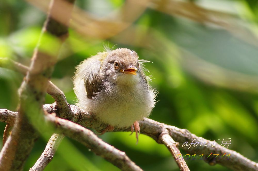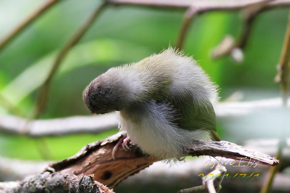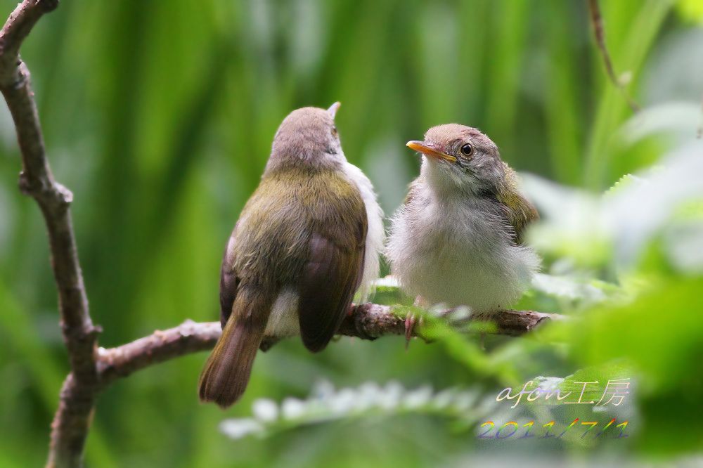 初生之鶯不畏人似乎所有生物都有一個同通點,就是出生後不久的階段,是其一生中最有趣的部分。不論是人類或鳥類,在這期間都呈現出天真及可愛。在這階段,他/牠對萬事萬物都充滿著好奇心。當然,同時亦對外界毫無警覺。01.這團毛茸茸的是甚麼東西?02.原來是隻全身披著絨毛的小幼鶯。據資料顯示,幼鳥身上的脂肪較多,莫非跟人類所說的〝嬰兒肥〞是相同的。03.再看這張,真夠趣緻可愛。04.現在可看清楚,這是隻長尾縫葉鶯Common Tailor Bird幼鳥。05.當時現場共有3隻小長尾,牠們正在接近地面的矮樹叢內嬉戲。06.看來3隻小傢伙已懂得短程飛行,所以親鳥就帶著牠們來到食物場現場餵哺。07.由於尚在對事物好奇的階段,所以亦對沒有偽裝的觀察者毫不介意。然而,稍後聽到一聲(就像集隊號一樣)鳥鳴,3隻小長尾就像一陣風般撲向聲音來源。估計是親鳥感到不妥,所以立刻召喚幼鳥歸隊。08.本地有不少八哥Crested Myna族群,不過還是首次見到小八哥。人們說:人章總是自己的好。相信照片也是一樣吧,那天遇上超合作的小長尾,不自覺地拍了很多。待編輯完成後,面對這堆天真可愛的小長尾照片就更難取捨。因此,也就從眾來處理,將之保留下來。環保鳥攝,您我做起。afon