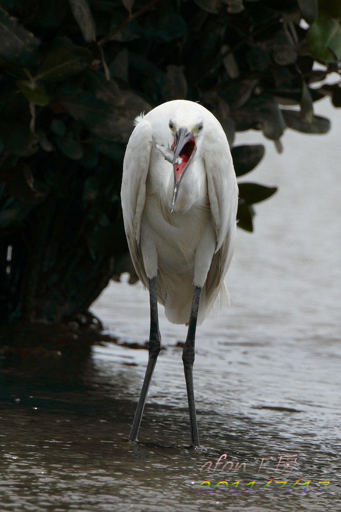 渠口雙鷺為了拍綠鷺,幾天都在生態保護區徘徊。談到這個保護區,認真能突顯本地旅遊局的宣傳口號:澳門就是與別不同。區內岸邊滿佈蟹籠、岸上是座水泥廠、當局正在截斷河道建海底隧道......然而,雀鳥與鳥友們就是在這片小天地進行接觸的。01.換了584後,這次算是首次拍小白鷺Little Egret。02.只見牠對著水面大叫,莫非在施展失傳已久的〝獅子吼〞。03.果然有效,魚兒〝口〞到擒來。04.再來表演一招拋魚絕技。05.一個不留神,見牠叼著條頗大的魚,從灘涂步向水溝。06.咦!難道退潮接近3小時的泥灘竟然有活魚?07.為了這隻綠鷺Striated Heron,特別找了個1.4X第III代,距離超過50米的牠不比對焦框大多少。08.這位稀客非常害羞,加上被本地鷺---小白鷺驅趕,總是停在50米以外的地方。09.這張就更遠,已在最遠的岩石上。拍攝時風勢很大,這隻成鳥頭頂的飾羽也被吹得亂飛。環保鳥攝,您我做起。afon