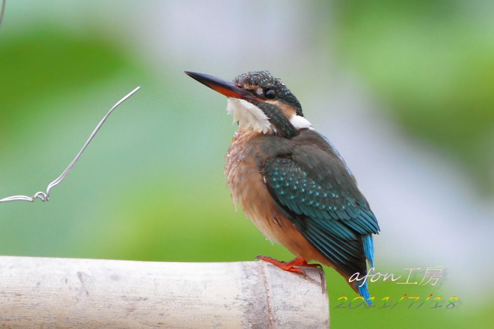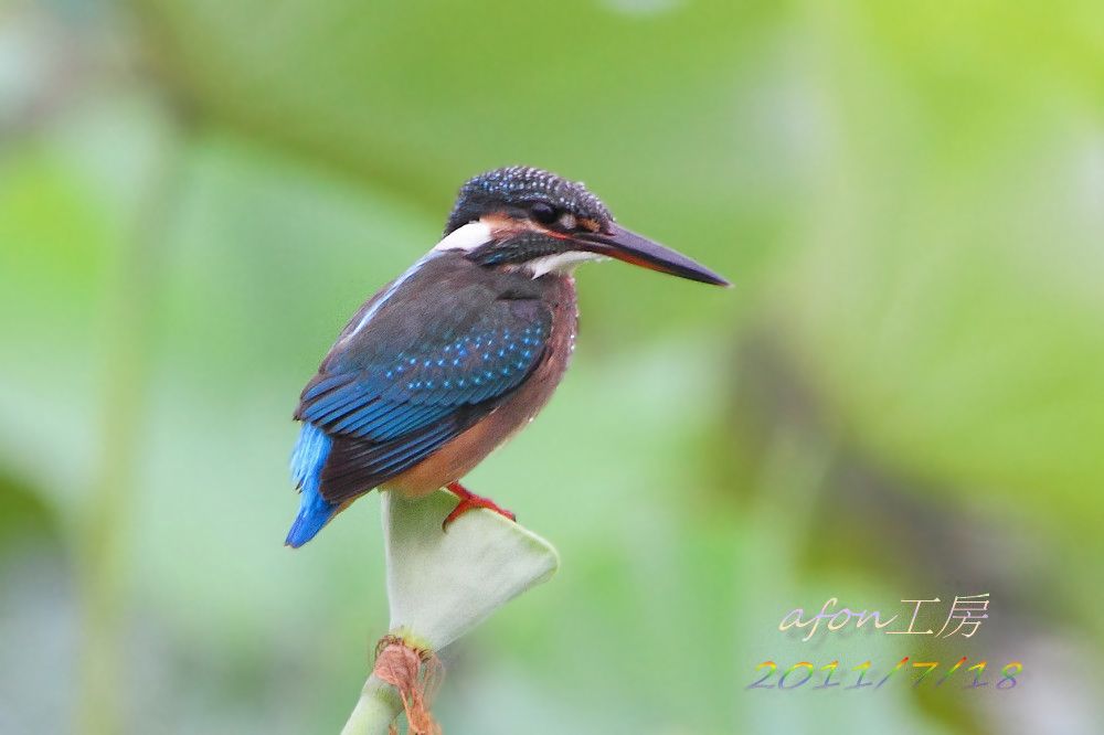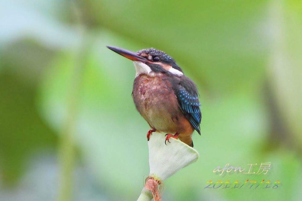 有翠就有趣之前談過翠湖蓮花生長過盛,估計會影響小翠的〝生計〞,不過有鳥友說仍拍到有小翠蹲在蓮花上,看來是自己過慮而已。然而,我則在湖的另一邊再次發現小翠在覓食。那天清晨,忽然見到水面爆起水花,一團小東西從水面飛出。對,正是牠。01.可惜當時有枝葉遮掩,無法拍得清楚的畫面,不過仍可辨認出牠叼著一隻小蝦。02.這隻普通翠鳥Common Kingfisher有紅色的下嘴,是隻雌鳥。03.不知是否與之前拍過的翠妹是同一隻?04.雖然有油壓雲台增加了穩定性,使用慢快門再沒懸念,不過考慮到當中仍有其他不確定因素,如風、目標的輕微動作等等,這都會影響照片的效果。05.除了器材之外,鳥攝最依賴運氣。找到鳥兒已不容易,若執意用慢快門,而剛好條件又欠佳,那就恨錯難返。06.最後這張是個人最滿意的一張,若每次都有如此收獲就......觀察了這隻翠妹多次插水捕獵,發覺牠的成功率大概是1/5,估計牠仍是新手吧。《中國鳥類野外手冊》說小翠幼鳥胸前〝具深色胸帶〞,但究竟何謂胸帶?經一輪搜尋,比對一些小翠幼鳥的照片,原來〝胸帶〞就是這隻翠妹胸前深色的部分。環保鳥攝,您我做起。afon