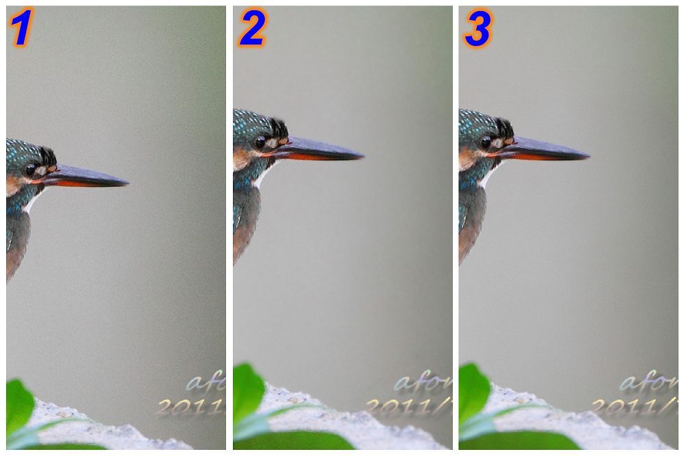 後製首先,想說明一下,本帖純屬新手摸著石頭過河的經歷,目的旨在拋磚引玉而已。一直以來,鳥友習慣用〝放毒〞一詞,意思大概是說某高手在推介高檔器材。然而,卻很少會有高手在推介後製方法。後製即拍得照片後,以軟件編輯及美化的手段。當然,最佳的後製也不及拍得好。那麼現在就由我這個鳥攝新手談談後製的重要性吧。01.照片是用7D+500mm+B牌C4770T碳纖腳架+M牌503油壓雲台拍的。拍攝距離大概是10米,這張是原來大小的照片,拍攝設定資料:ISO 320,f/4及1/800。由於現場光線頗暗,所以採用了光圈先決模式。02.為怕一些雜亂背景或要作更好的顯示,有時會放大目標,而現在的鳥攝鏡大概也可支持不太大的照片放大。然而,數碼照片全由小點組成,放大照片亦即放大這些小點,所以照片的顆粒也同樣變大了,加上愈高ISO,照片的雜訊也愈多。雖然,放大後的目標可能沒有問題,但背景或許就變得非常粗糙。這張是原大小照片經放大後的狀態,小翠羽毛清晰可見,但背景卻變得充滿顆粒,不堪入目(有說7D拍的背景有點髒)。03.幸好,我們可以用一些軟件將這些顆粒〝磨掉〞。最近找到個有試用版本的去雜訊軟件NeatImage,這軟件只有幾M,而且只需按幾個鍵就可完成任務。當然,試用版的效果是比不上商業版的,不過相當適合一般要求的鳥友。04.最常見的軟件應是PhotoShop,只要將需要〝磨〞的地方圈住,再使用減雜訊的濾鏡即可。05.究竟,這些軟件作用有多大,彼此分別又如何?1號是放大後的原照片,可見背景深色部分顆粒非常粗糙;2號是經NeatImage〝磨〞後同樣的位置;3號則是經PS大神處理後的效果。我的照片流程:由相機拍出Raw檔,用隨相機所附軟件Digital Photo Professional處理再轉成Jpg檔。接著用免費軟件PhotoCap的模版裁切成適當的照片(含加字、拍攝日期、調節光度、橫直及大小)。最後,再用PS〝磨掉〞那些討厭的顆粒。環保鳥攝,您我做起。afon