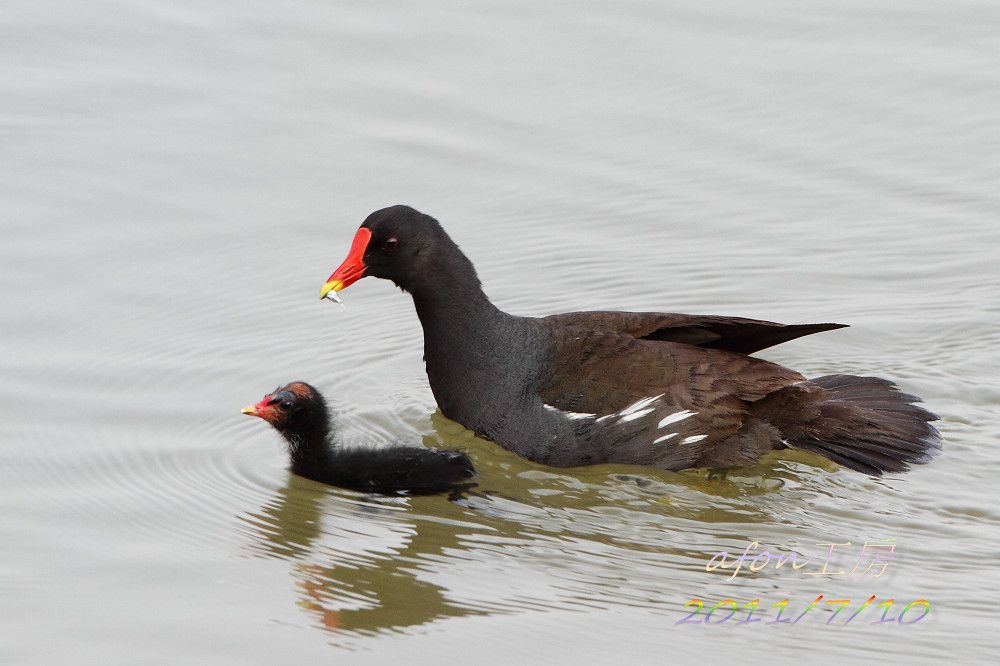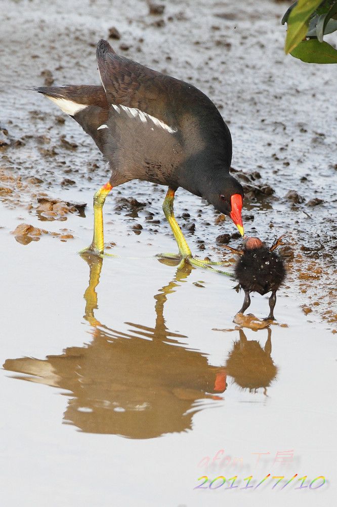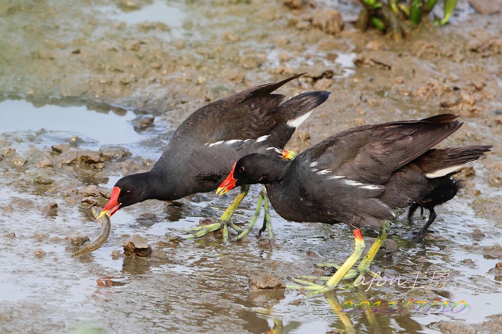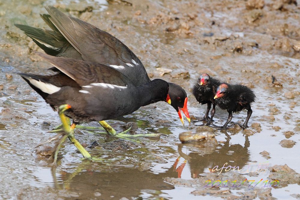 此景只待成追憶這一段時間差不多每天都到生態保護區,所以黑水雞一家四口就成了當然的模特兒。然而,最近兩天總發覺牠們的數量有變......01.網路資料〝雌雄共同餵養照顧雛鳥,有時前窩產的未成年鳥和同窩內的其他成鳥也參與照顧雛鳥。〞每次左側這隻體型較小的遇上右側(從觀察得知)的媽媽時,後者總會慈愛地為前者整理羽毛,所以估計左側的一隻應是前窩產的未成年鳥。02.媽媽捉了小魚還會追著小雞,為幼鳥送上食物。03.小小雞索食時,總是舉起未發育的小翅膀,模樣超〝萌〞。04.稍後媽媽(一時分不清,也可能是那隻亞成鳥)捉到一條長長的魚。05.只見本來的那隻弄了很久也無法搞定,唯有召來其他家庭成員來助〝嘴〞。06.正好媽媽來一課活動教學,好讓小雞們將來能更好地獨立生活。經過兩天的觀察,見媽媽只帶著一隻小雞,或者就是那隻小小雞不幸......這張或許是一家四口最後的合照,適者生存。環保鳥攝,您我做起。afon