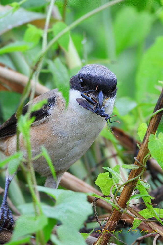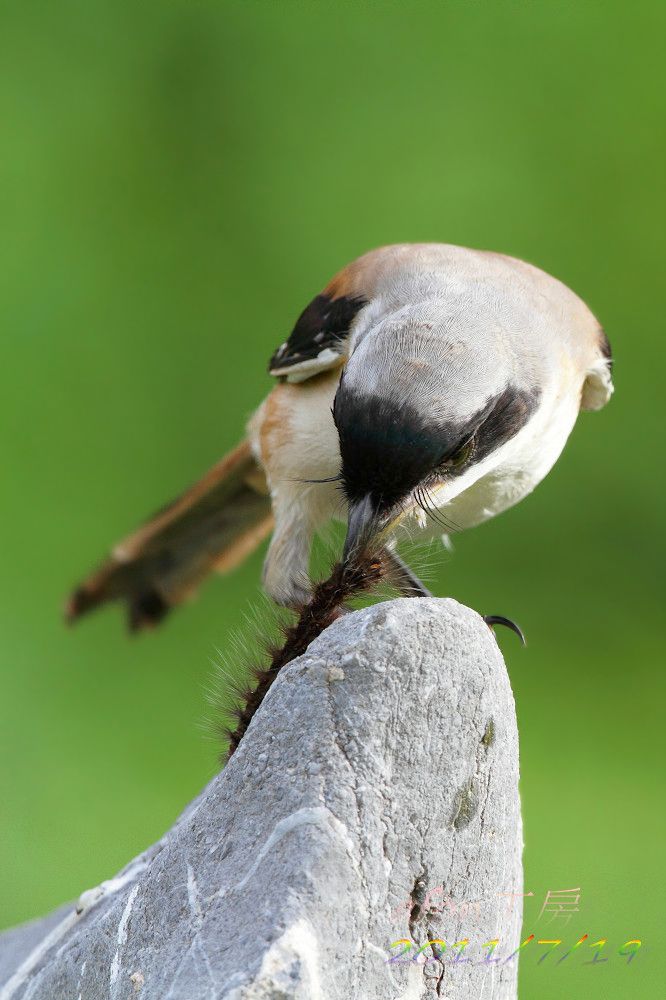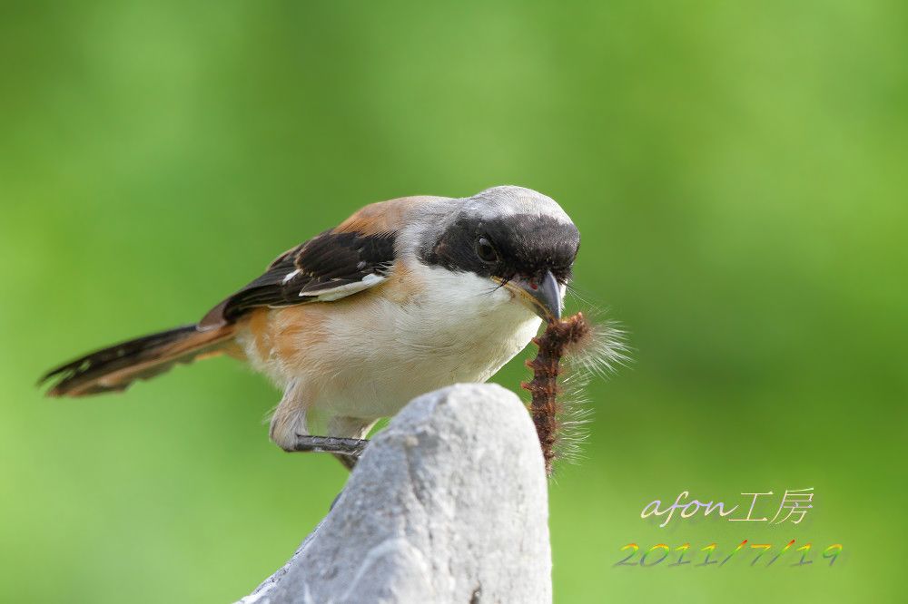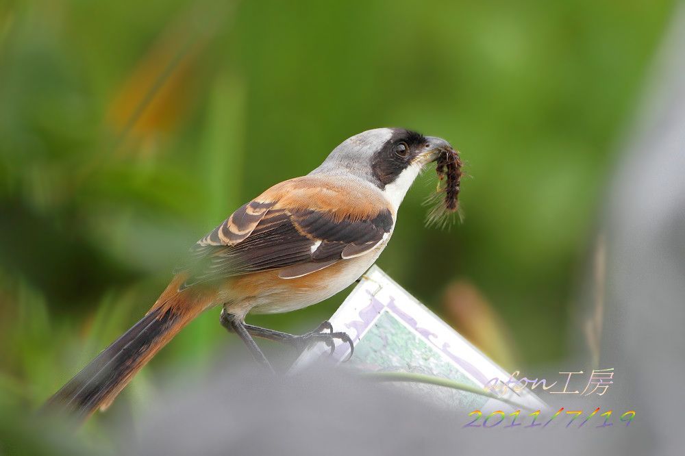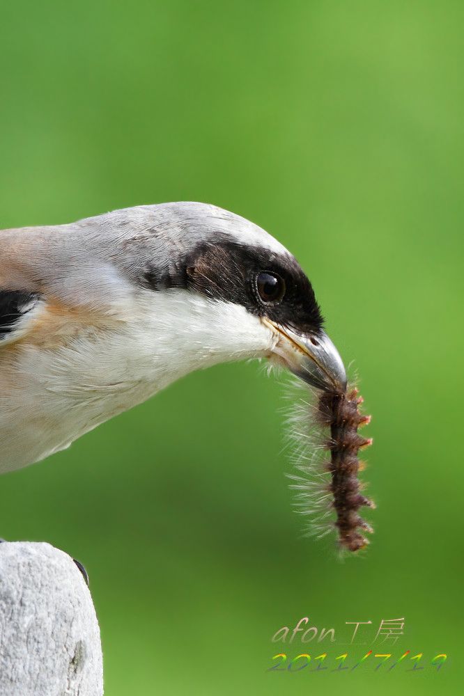 新進殺手棕背家有子初長成。在相隔10多天後,昨天再次探訪時,之前火熱的棕背幼鳥,已能初顯身手,盡露殺手本色。01.記者前次拍這隻棕背伯勞Long-tailed Shrike幼鳥時,牠只懂整天呱呱地叫喚媽媽,是隻食來張口的菜鳥。然而,現在已能自行捕獵一些昆蟲。02.吃完昆蟲不久,牠又在草地撿起一條大毛蟲。03.這條頗大的毛蟲對這隻新進殺手來說,確是有點兒大。04.既然是新進殺手,捕獵功架當然有改進的空間。只見小棕背將毛蟲弄了很久,而且還掉落地上兩三次。05.然而,最後小棕背終於吞下這條大毛蟲。從捕獵至進食整個過程,小棕背都是不假外求的,這說明牠已能獨立生活。敬告鳥界,新一代殺手快將學成下山了。環保鳥攝,您我做起。afon