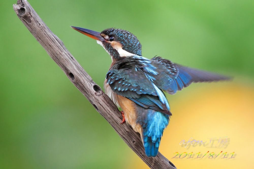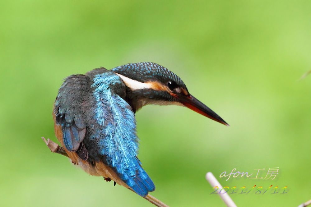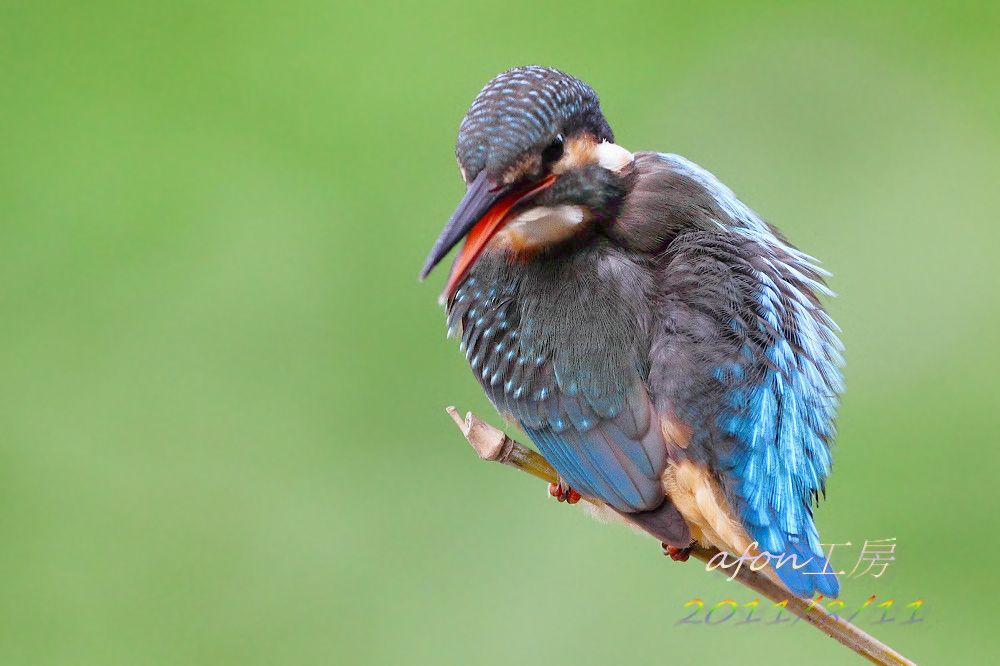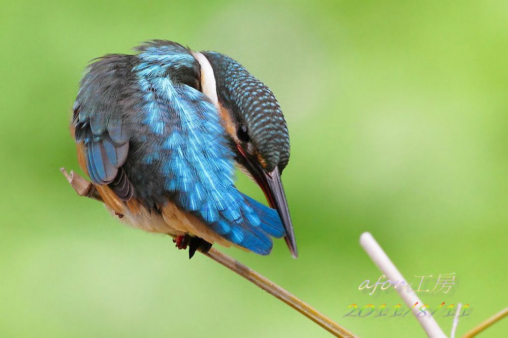 怪翠本來這帖只想貼三數張照片,然而竟然失控地貼了9張,難怪人們說〝自己的文章(作品)永遠是最棒的〞。01.總覺得豎起羽毛的普通翠鳥Common Kingfisher有點像個松果。02.不過這個松果卻是色彩亮麗的。03.接著翠妹準備擺個高難度的姿勢。04.整個身體彎成個倒轉的〝U〞字型。05.很多動物在唬嚇對方時,常會豎起全身的毛。06.然而,雀鳥豎起羽毛就似乎跟人類〝伸懶腰〞一樣。07.個人比較不喜歡看小翠的正面,特殊是牠的頭部。這樣看牠的頭有點小,與身體不成比例。08.翠鳥的嘴巴在身體長度來說,可算是超比例的,所以張嘴的容積就非常大。09.之前幾乎天天去拍翠鳥,除了拍得頗滿意的照片之外,還加深了對翠鳥的認識。環保鳥攝,您特做起。外拍時可自備飲用水,盡量少買瓶裝或盒裝水/飲料,既省錢又環保,不妨試試。afon