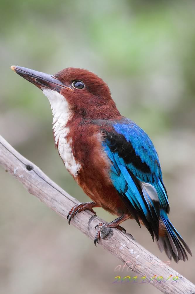 有翠則靈鳥友說去拍大翠,其實我是有點擔心的。最怕難以再有當時的好鳥運,現實亦確然如此,再三去拜訪,但總不獲白胸垂青。01.那天真是我的鳥運日,所以手邊仍有一些存貨。02.雖然這隻白胸翡翠White-throated Kingfisher幼鳥有點〝傻B〞,只是呆呆地蹲在枝頭,不過每次回想當時情景,真是做夢也會笑起來。03.自己對光線的控制仍有待加強,遇上猛烈陽光的條件,目標就超〝硬〞,加上鳥兒的羽毛反光,照片效果就更差。04.我倒喜歡陰天的拍攝條件,照片的效果也滿意得多。05.白胸B每天的長大,或許就是已懂得保護自己,所以不再會出現在這枝頭。環保鳥攝,您我做起。雀鳥需要樹木才能生存,所以在下次外拍時,愛惜身旁的植物。afon