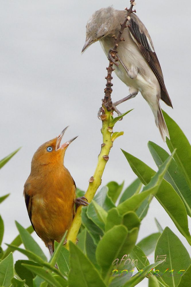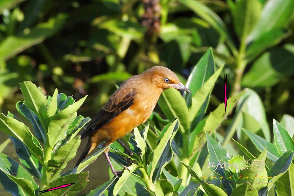 異色亦稱皇保護區內有一族群的灰背椋鳥White-shouldered Starling,牠們經常停在那些矮樹叢上。然而,某天卻發現了一隻羽毛顏色與別不同的。註:多年前,在珠海見到攤販在賣一些紅色毛及綠色毛的小狗。在覺得驚訝之餘,細看原來是染色的,而且染色的技術相當拙劣。01.這天一小群灰背如常地停在矮樹叢上。02.忽然,有一隻羽毛顏色近似畫眉的傢伙加入灰背陣中。定神一看,除了毛色之外,牠跟一般灰背無甚麼分別。紅色箭頭所指是一些飛蟲,這天終於證實了灰背原來在矮樹叢上覓食。03.灰背灰色的部分,這傢伙的就是鐵銹褐色。04.有鳥友猜測牠是被人染色的,就像那些紅色/綠色的小狗一樣。05.這張正好來個比對,就可知這不是灰色的灰背與一般灰背的異同。06.然而,總覺得染色怎會有如此自然的效果。翻查《香港及華南鳥類》對灰背的描述有這一句:毛色變化多端,部分帶有鐵銹褐色或粉紅色,原來如此。環保鳥攝,您我做起。一般雀鳥都怕人,但若披上偽裝,您甚至可與牠接近到3、4米。因此,使用偽裝,既可拍得較佳的照片,又可盡量避免驚擾雀鳥,不妨試試。afon