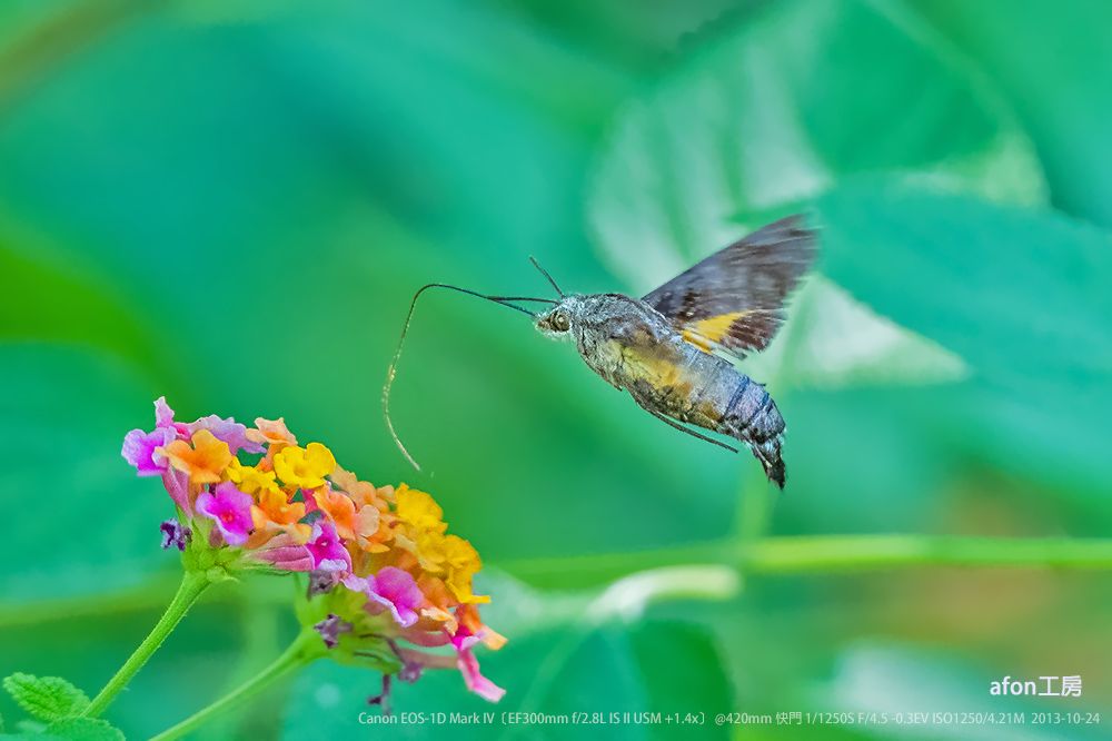 蝦也會飛?多年前往黃山旅遊,有天晚飯後在酒店前花壇散步,忽見有幾隻體型細小但拍翅頻率超高的小東西在花間飛舞。當時對生態連皮毛認識也沒有,還以為那些是蜂鳥。01.事隔多年,偶爾在一兼拍昆蟲的鳥友的美照中得悉,一種俗稱〝飛蝦〞的飛蟲。02.回想黃山的發現,估計當時所見的其實就是飛蝦。03.由於澳門的〝與別不同〞,莫說飛蝦,就連蝴蝶數量也在下降。04.幾天前在葡韻等候北紅尾時,見一班影友對著一大堆馬櫻丹,原來大伙在等候飛蝦現身。05.說來慚愧,雖常在野外,卻絕少親眼目睹這種奇怪的小飛蟲。反正閒著,二話不說加入候蝦行列。06.飛蝦實屬蛾類,稱為長喙天蛾,這隻翅膀破損得很厲害,估計已在生命週期的尾末。07.牠的口器超長,就像個揮動著皮鞭的馴獸師。afon