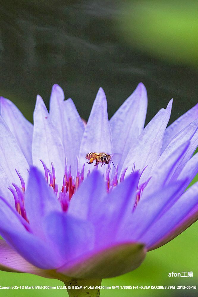 勤蜂世界各地都出現反常的天氣現象,我們這裡在連續多天酷熱高溫後,今天迎來一個強颱風。據報道,這個颱風來勢洶洶,希望這次不會造成太大的影響。颱風天,最佳節目就是整理照片。又挖出3個月前拍的勤蜂照片,呵呵...01.記得當日到葡韻最後一次拍牛背鷺,可惜牛背離得遠遠的,所以四處逛逛。02.走到小蓮池看睡蓮,當時有幾隻小蜜蜂在辛勤地工作。03.幸好當日帶著的是328+1.4x,立即手持追拍這些勤力的傢伙飛舞的動作。04.一般來說,睡蓮花瓣及花蕊的顏色都比較鮮豔,自然吸引著蜜蜂。05.這隻小蜜蜂兩腿及背上的剛毛黏滿了黃色的花粉。06.在蜜蜂採蜜的過程,花粉由一朵花傳到另一朵,就這樣幫助著植物繁衍。afon