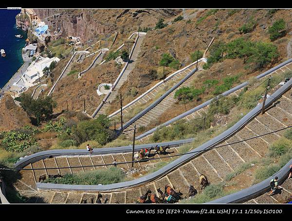 我們兩個走上這條大道,一度也猶豫著要不要也來騎個驢子。但是,騎上驢子後,手邊就是懸崖,一路搖搖晃晃地在階梯上移動,重心不時在偏移著,這讓我抗拒去嘗試。Qbee一直很喜歡騎馬,但是對於驢子不甚了解,會擔心整路的驢子會突然暴衝,所以也不敢嘗試。