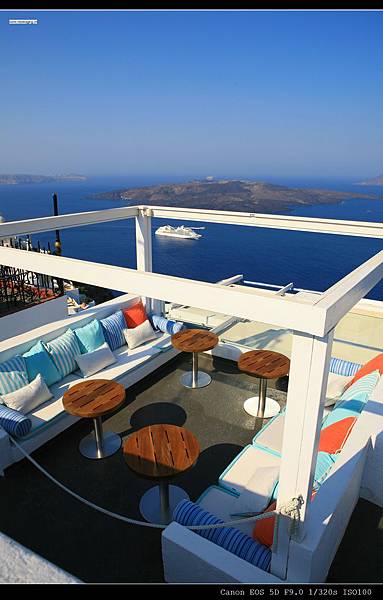 聖多里尼的住宿是Villa Gianna,距離費拉巴士站約10-15分的路程。和住在米克諾斯一樣的是,都選擇有游泳池的飯店,如果沒有機會到海邊游泳,一樣可以留在飯店享受渡假游泳的愜意。在米可諾斯,去了海邊、也有在飯店的泳池游,這是每天的例行公事。米克諾斯住宿的飯店Corfors hotel的泳池很大,深有兩公尺,長度也接近25公尺。在聖多里尼,可能選擇的飯店離鬧區較近,可能泳池也蓋得不大吧,長度頂多也只有20公尺。不過一樣的是都保持約在20度的水溫,在熱浪席捲的溽暑下,跳入水中只能用透心涼來形容。不管是在海邊或是泳池,感受起來,最適宜游泳的時間應該是在下午。早上和傍晚,隨著溫度降低,泳池的水溫會讓人稍有冷冽刺骨的感覺。