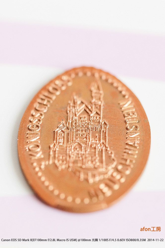 06.再看看5分歐幣,呵呵!對了,其實壓出這塊紀念牌的吃角子機是免費供旅客使用的,只需放入一個5分硬幣,再用力轉動手柄,機器會將硬幣壓成橢圓,並在一面壓上圖案及文字,而一塊漂亮的紀念牌就是您的了。