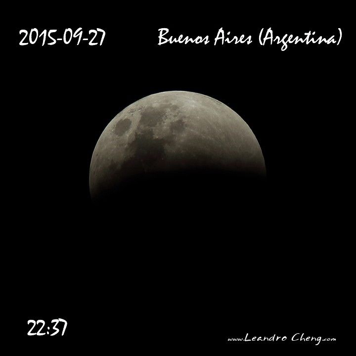 2015年9月27日在美洲可以觀察到月全蝕 (血月), 在河邊吹了6小時的河風, 冷得哇哇叫, 第二天就掛病號了.