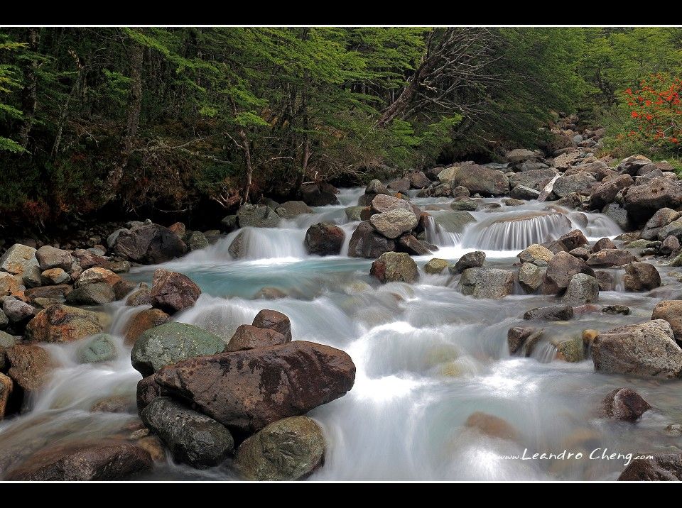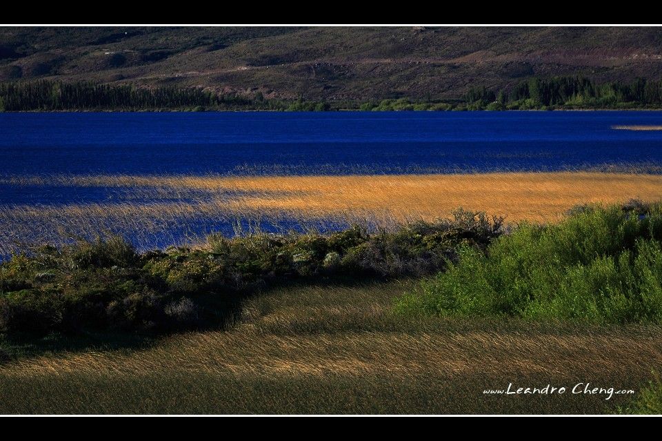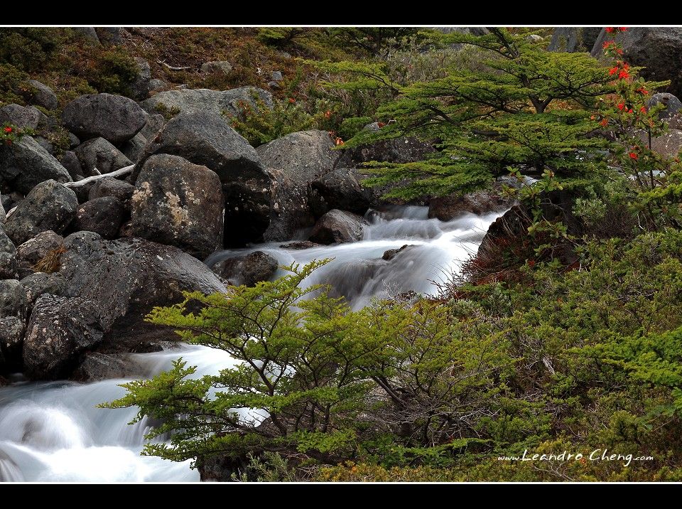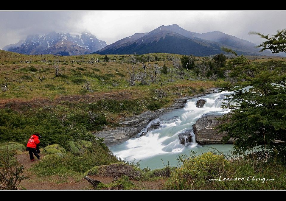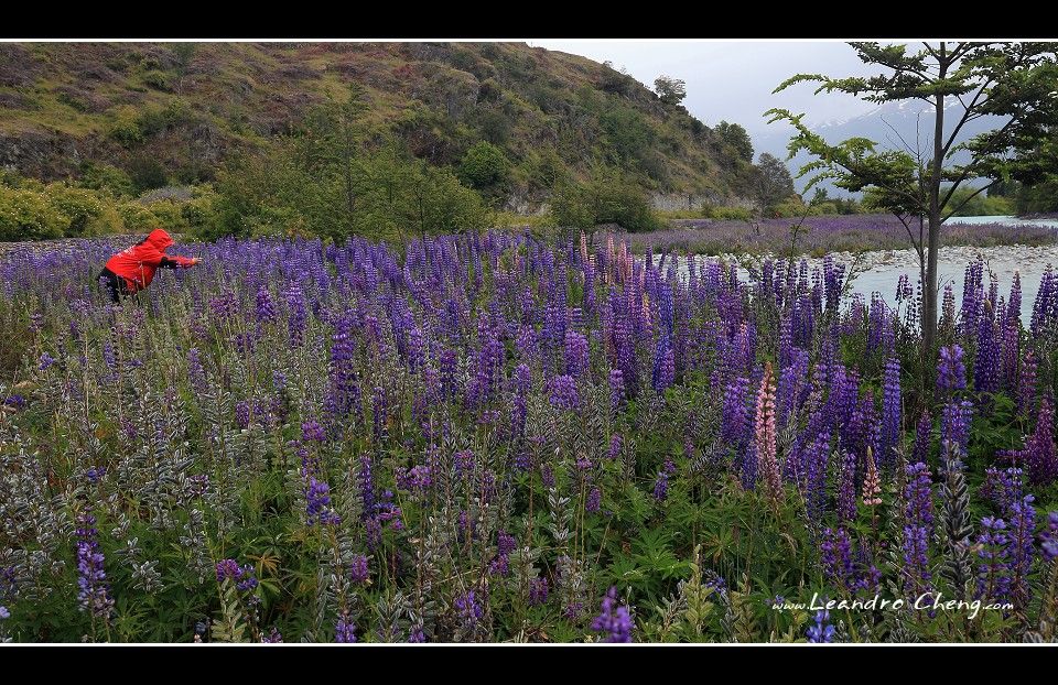 之後到冰川旁的Lago Grey湖畔拍攝, 停好車, 穿越一片Las Lengas樹林後抵達湖畔, 風非常非常的大, 我不知道時速大約多少? 但是客戶的三號腳架 + Hasselblad 503CX + A12片盒被風吹倒, 還好當時腳架很低, 剛好在換鏡頭, 腳架上只有機身沒鏡頭, 只有片盒受傷凹了一塊.