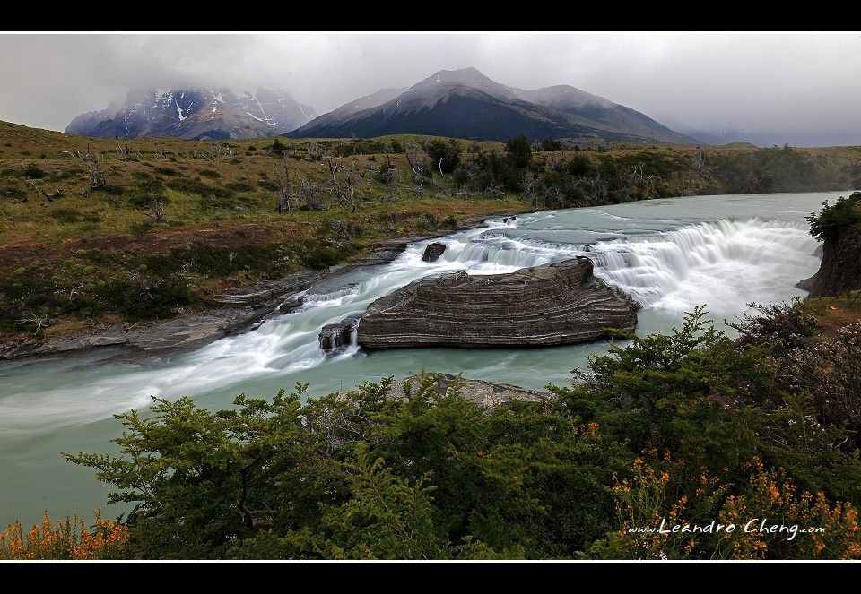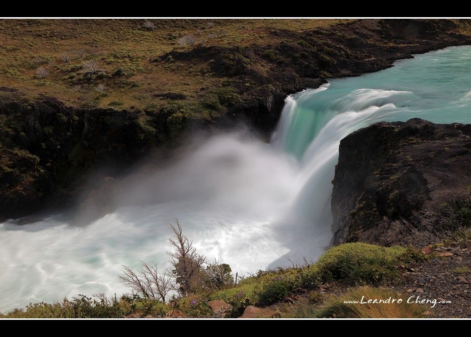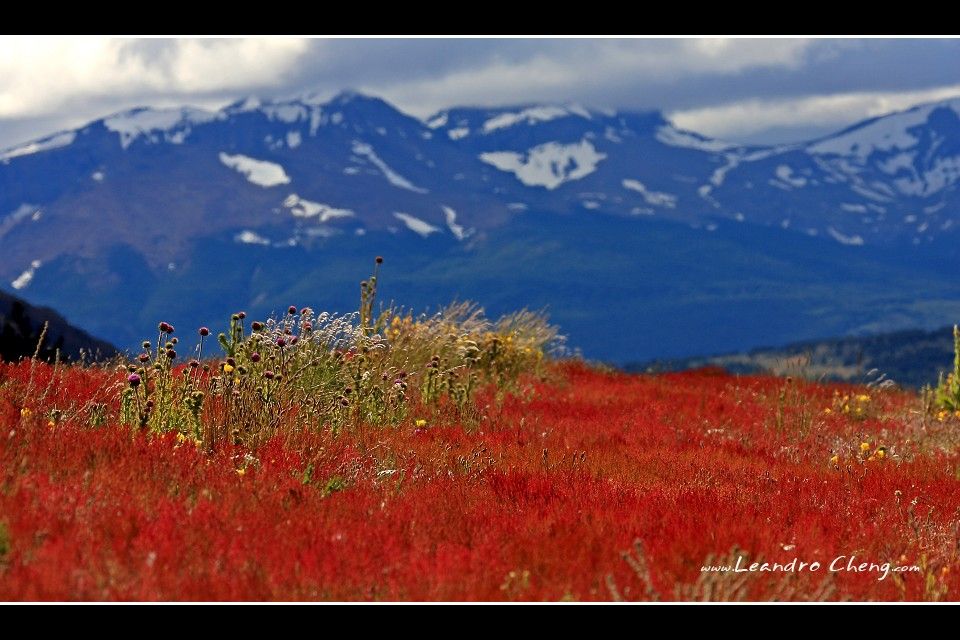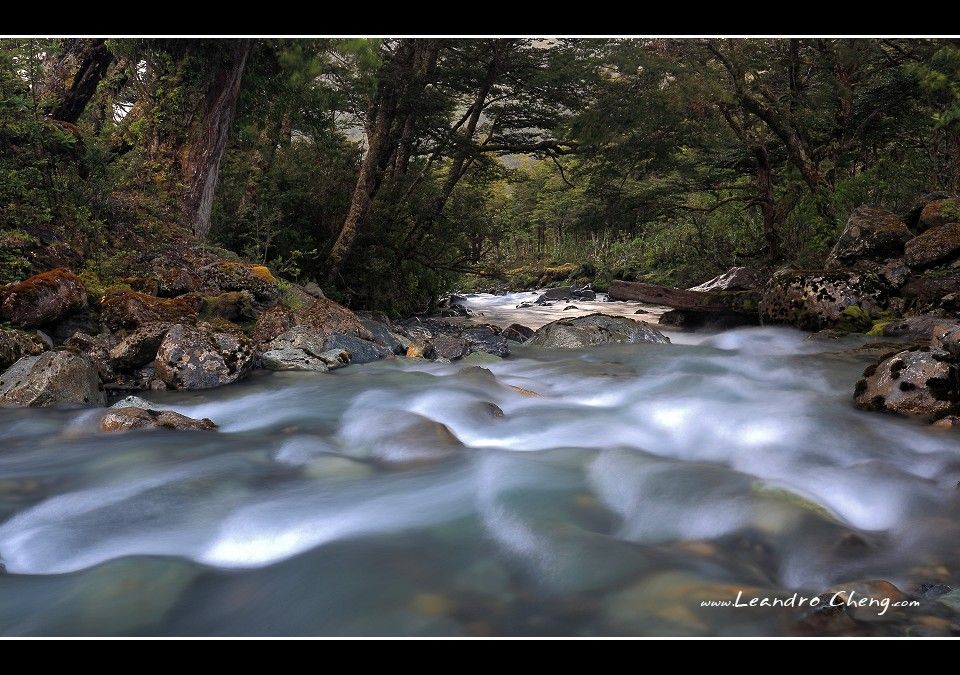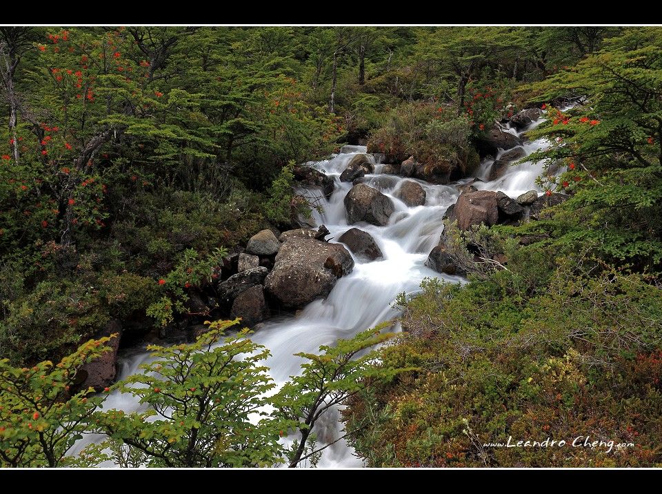 之後到冰川旁的Lago Grey湖畔拍攝, 停好車, 穿越一片Las Lengas樹林後抵達湖畔, 風非常非常的大, 我不知道時速大約多少? 但是客戶的三號腳架 + Hasselblad 503CX + A12片盒被風吹倒, 還好當時腳架很低, 剛好在換鏡頭, 腳架上只有機身沒鏡頭, 只有片盒受傷凹了一塊.