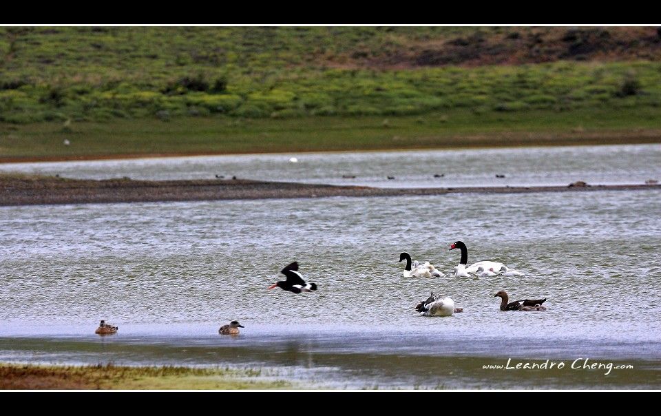 離開Paine國家公園的入口: Puerto Natales前, 先到海邊拍黑頸天鵝.