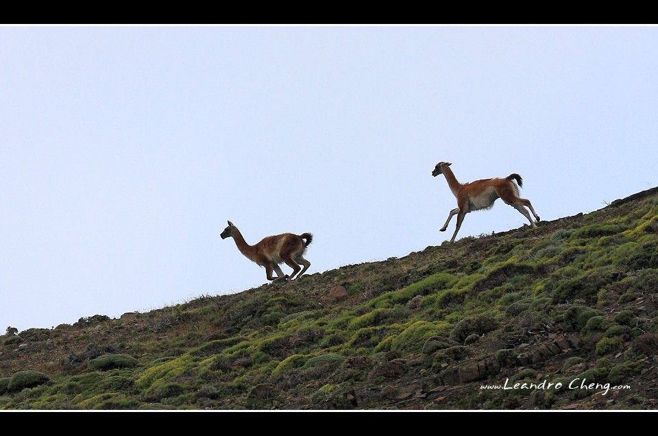 在山上奔跑的Guanaco (羊駝).