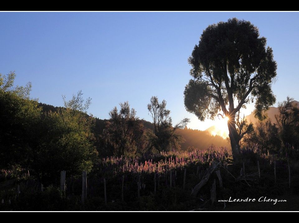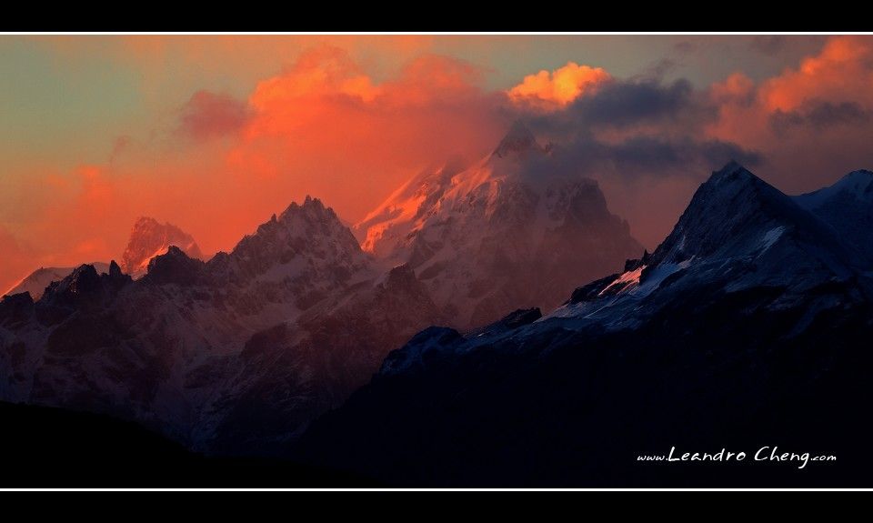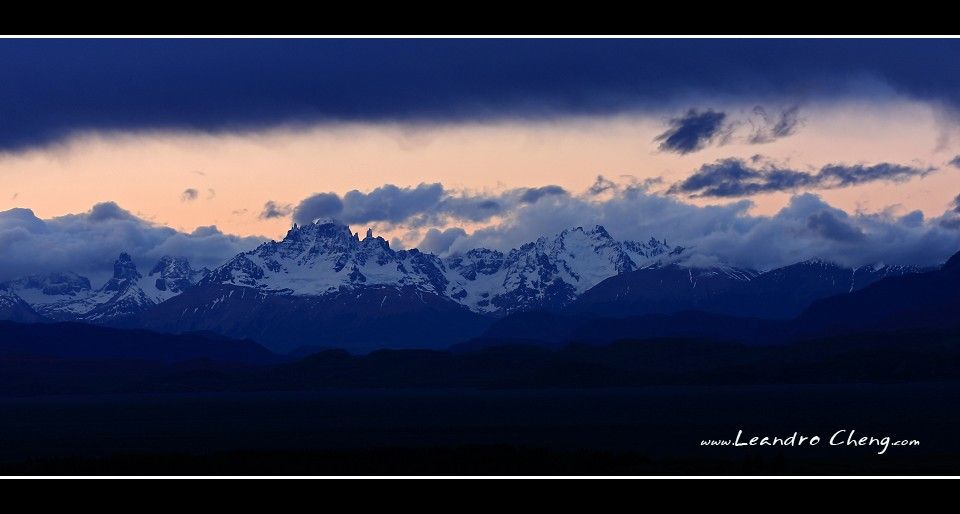 旅館面對百內山脈, 所以清晨就起來拍日出了, 這時候陽光還沒照到山峰.