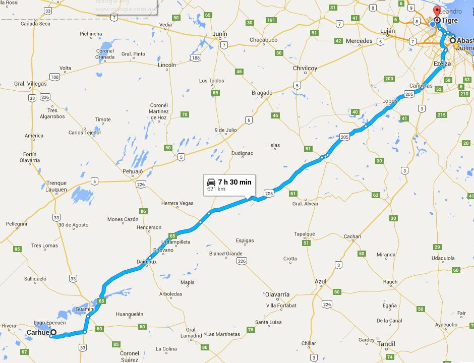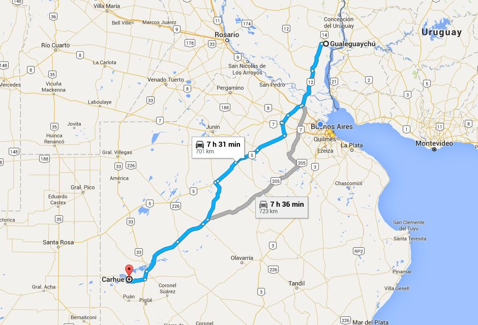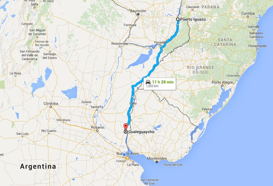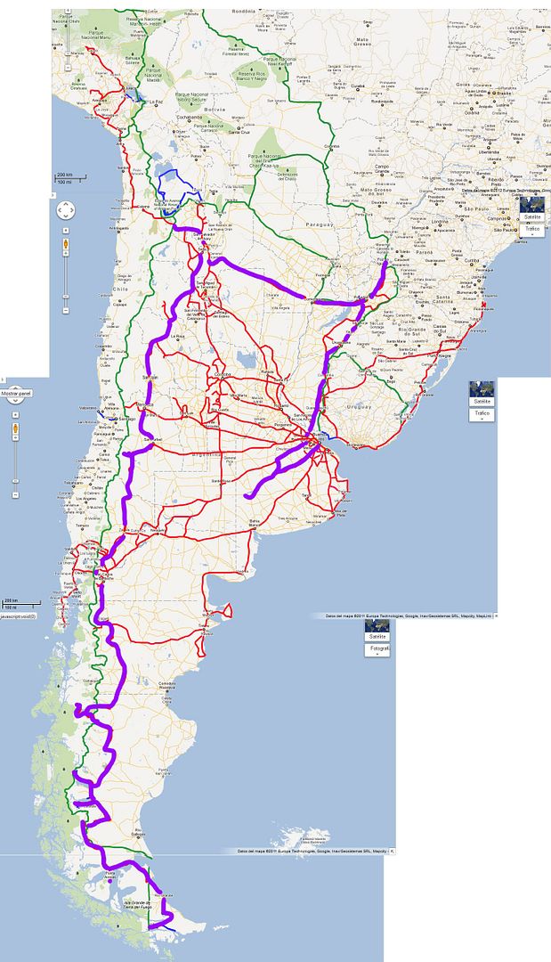 紫色的線是這30天的行駛路線, 共開了約12000公里, 大約是40號國道沿南到北 - Iguazú瀑布 - Carhué - Buenos Aires.