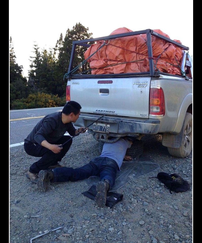 朋友抵達Ushuaia後, 除了將機油及所有的過濾器換新外, 還多準備了一個備胎, 及一個冰箱, 裡面有泡麵 / 水 / 啤酒 / 紅酒 / 香檳等東西.