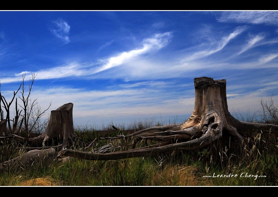 這張跟上面的烏雲背景枯木是相隔不遠的地方, 不同的天空顏色造成完全不同的效果.