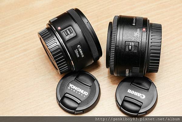 因為原廠的50mm F1.8二代已經不在了,所以只能拿新版的50mm STM這隻來比較一下兩者的體積,體積滿接近的,都是適合當機身蓋的小巧鏡頭