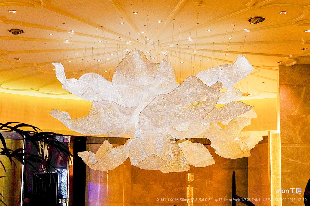 盛水養著截斷了帶花朵的枝幹。這展覽歷時20天,您說要否更換這些