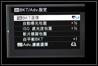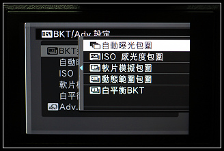 光是包圍曝光就有許多模式可以選擇 , 另外還有多種濾鏡
