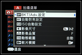 進選單後的第一頁 , 第一項是包圍曝光與濾鏡的設定..