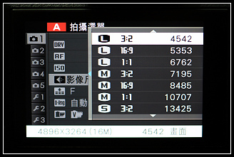 左上功能區主要有ISO轉盤 , 最高可以到H2(25600) , 個人認為一般都放在A(AUTO)就很好用了 , 選單內可設置ISO AUTO最高到6400