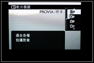 另外軟片模擬就有點類似它廠的Picture style , 可以套用幾種色彩模式..