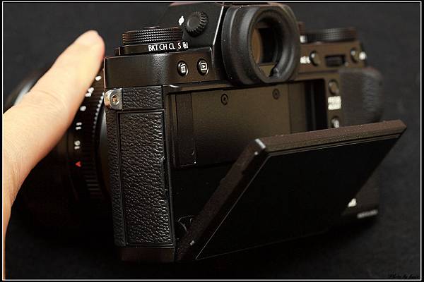 大家也能注意到 , 右邊姆指區也有加上蒙皮 , X-T1的蒙皮品質相當好 , 摩擦力大 , 較不容易手滑