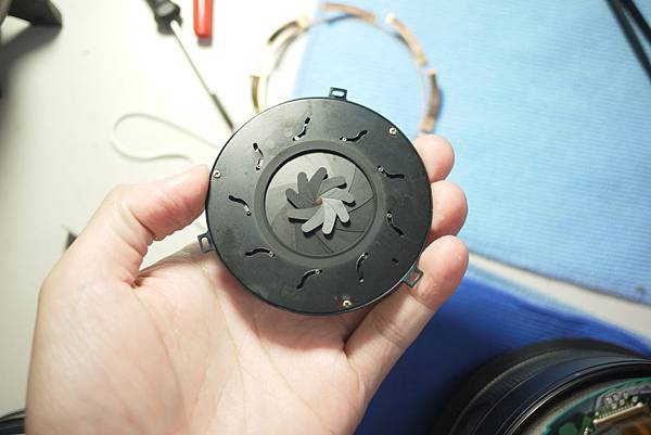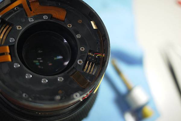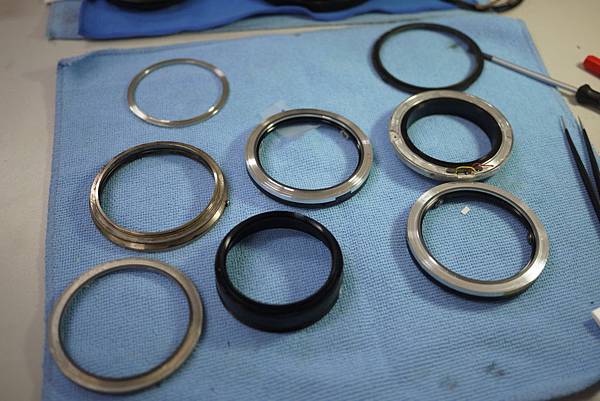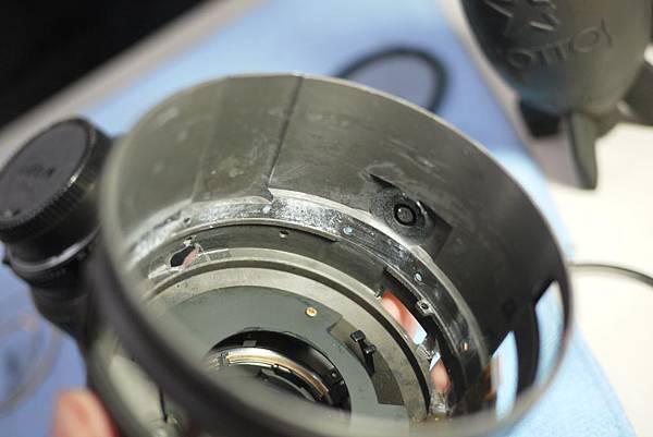 晚上10點多~~我帶著這顆鏡頭到維修的老前輩面前,拜託他幫我打開這卡死已久第二鏡筒,不愧是老前輩,第一句話就問我,你確定是這個方向打開她,沒有其他螺絲鎖著,你確定嗎?