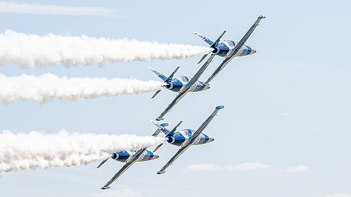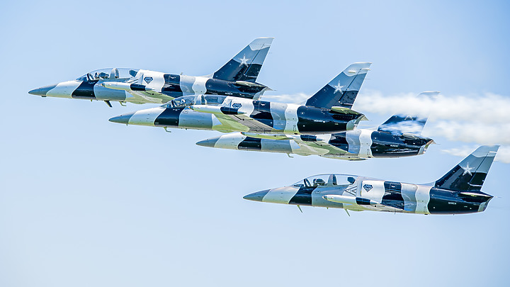 Black Diamond Aerobatic Team. 黑鑽石特技飛行表演隊,總部位於佛羅里達州萊克蘭, 由七架噴氣式飛機——五架 L-39C 和兩架 MiG-17組成,但不是每次飛行表演都是七機出鏡, 機身為北極迷彩塗裝。